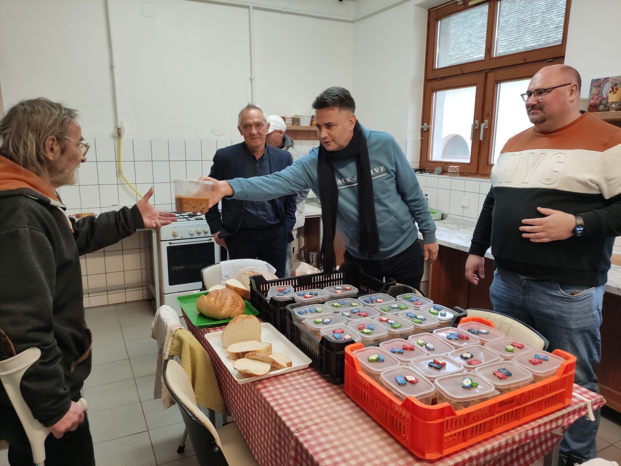 – Ez egy olyan alkalom, amikor nem a város, hanem mi magunk hozzuk az ajándékot, ahogyan szilveszterkor is rendszeresen ide látogatunk. Most Gyöngyösi Ferenc és barátai készítettek egy nagy adag chilis babot, amelynek alapanyagköltségét a két alpolgármesterrel együtt mi magunk biztosítottuk. Az ételt kenyérrel és svájci csokoládéval osztottuk ki. Fontosnak tartjuk, hogy a hajléktalanszálló lakóit az év végén két alkalommal is megajándékozzuk. Ez már a nyolcadik ilyen alkalom, hogy karácsonykor és szilveszterkor ellátogatunk ide. A legfontosabb az, hogy az itt élők is érezzék: attól, hogy nehéz szociális helyzetbe kerültek, a társadalom nem mondott le róluk. Segítséget és gondoskodást kapnak, és ami a legfontosabb, megbecsülést és szeretetet – mondta Márki-Zay Péter polgármester.