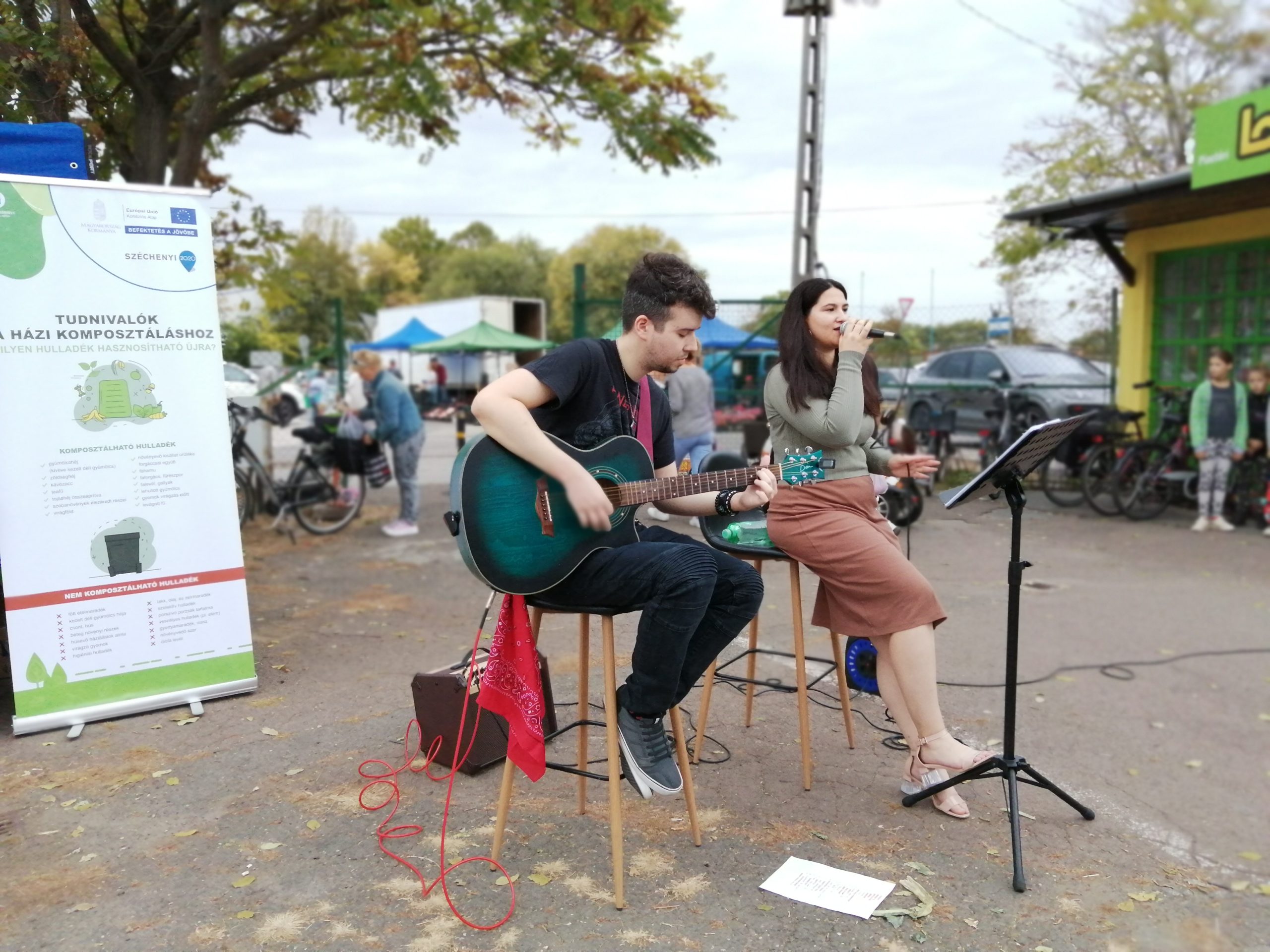 Koncz Barbara gyönyörű hangja tölti be jelenleg is a teret a szombaton kezdődött piac-fesztiválon. A helyszínre kitelepült sátorban pedig a szelektív hulladékgyűjtésről tudhatnak meg többet, és egy rövid kérdőív kitöltése után értékes ajándékokat kaphatnak az odalátogatók.