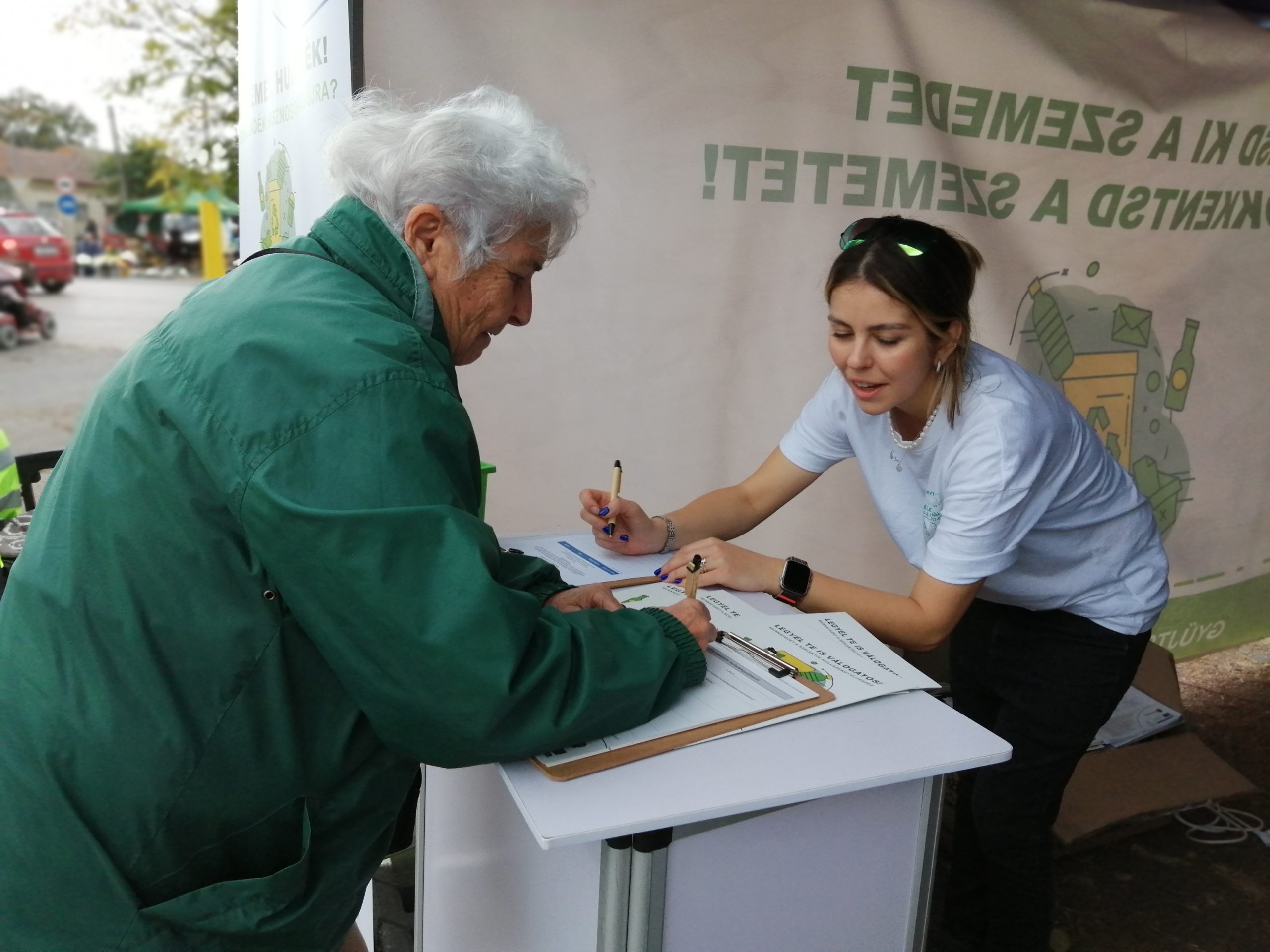 Nemcsak fontos tudnivalókkal gazdagodhatnak azonban azok, akik felkeresik a sátrat. Mindenki, aki rászán néhány percet az idejéből, hogy megválaszolja az egyszerű kérdéssort, tornazsákot, pólót, tollat, jegyzettömböt vagy esernyőt kap ajándékba. Nem mellesleg segít is a városnak, hiszen a hulladékgazdálkodási projekt keretében összesen 4500 aláírást kell összegyűjteni decemberig.