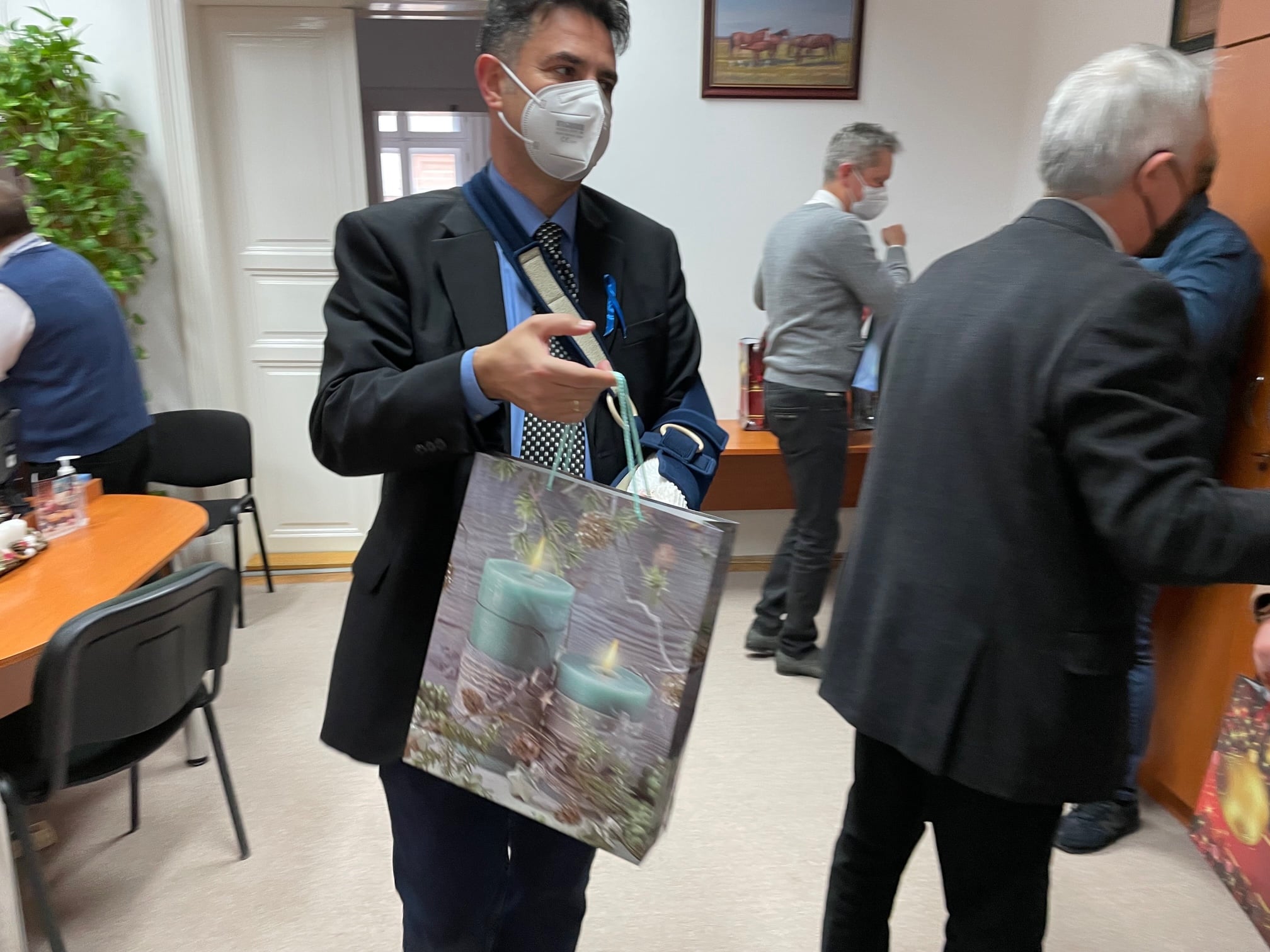 Márki-Zay Péter polgármester, Kis Andrea, Berényi Károly és Szabó János alpolgármesterek, Tatár Zoltán jegyző és Karsai Éva aljegyző egy apró figyelmességet adott át karácsony előtt a hivatal minden dolgozójának, megköszönve az egész éves munkát és áldott karácsonyt, boldog új évet kívánva minden munkatársnak.