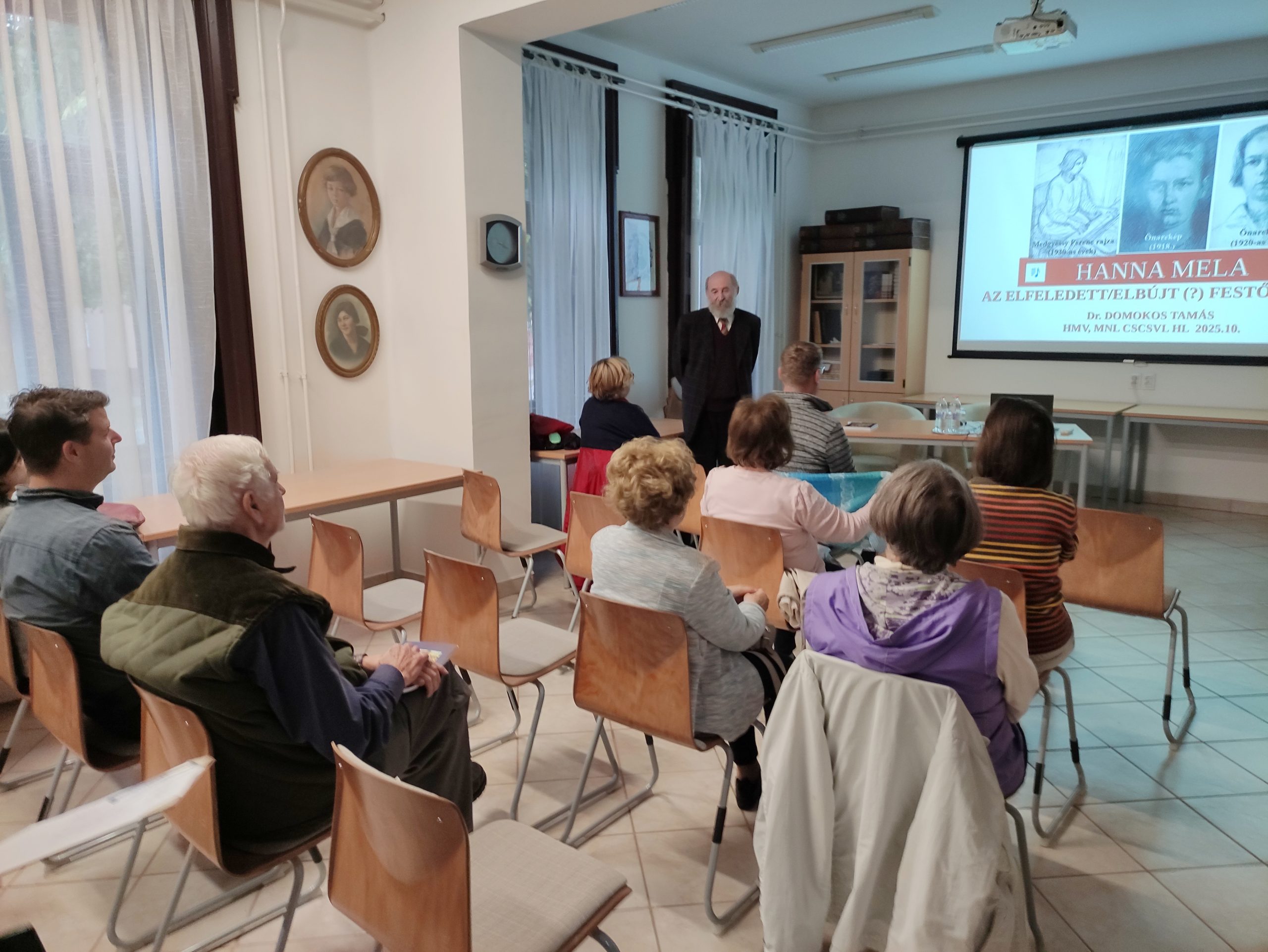 – Nem nagy életműről van szó, hiszen viszonylag későn, 1929-ben, harminchét éves korában végezte el az akadémiát. Akkor kezdődött a pályája, majd 1945-ben lebombázták a lakását. A közte eltelt időszakban mintegy 250 képet készített. Érdekes, hogy a pestiek vásárhelyinek, a vásárhelyiek pestinek tartották. Itt, Vekerdyéknél, a régi Oldalkosár utcai, majd a Szőlő utca 2. szám alatti házban talált otthonra. Alkotásainak túlnyomó részét a mártélyi és vásárhelyi táj, az itteni emberek, piacok és mozgalmas jelenetek ihlették. Voltak kedvenc alakjai is – például Kati néni –, akik többször visszatértek műveiben. Az Aratás után (Mulatság az olvasókörben) című képen csaknem száz figura látható: hihetetlenül színes, mozgalmas kompozíció, amelyen nincs két egyforma vagy beállított alak. Azért volt szívügyem ennek az albumnak az elkészítése, mert nemcsak ismertem gyerekkoromból, hanem úgy éreztem magam, mint a kalászszedő: ami aratás után még elpotyogott, azt össze kell gyűjteni, hogy mindenki hozzáférhessen – fogalmazott Domokos Tamás, aki nemcsak a könyvet, hanem Hanna Mela gazdag grafikai és festészeti hagyatékát, valamint életútját is bemutatta az érdeklődő közönségnek.
