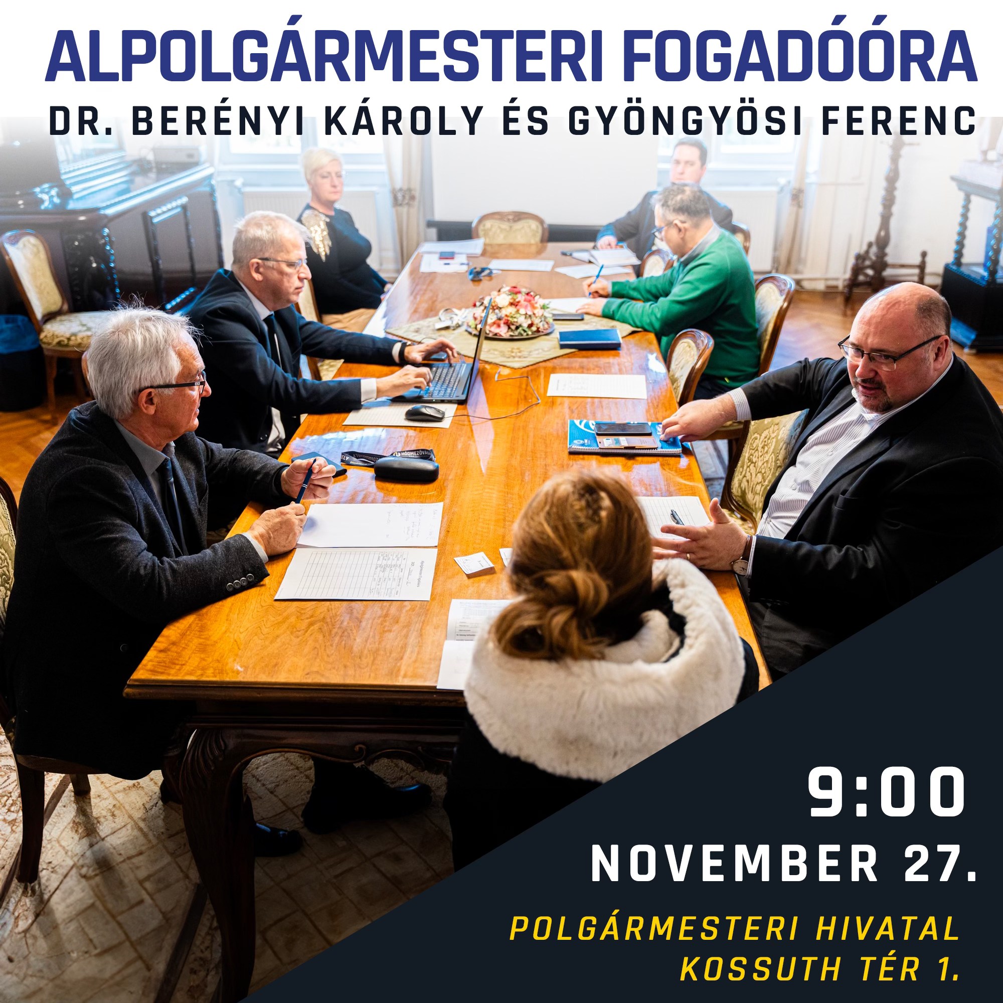 Dr. Berényi Károly és Gyöngyösi Ferenc alpolgármesterek közös fogadóórát tartanak csütörtökön.