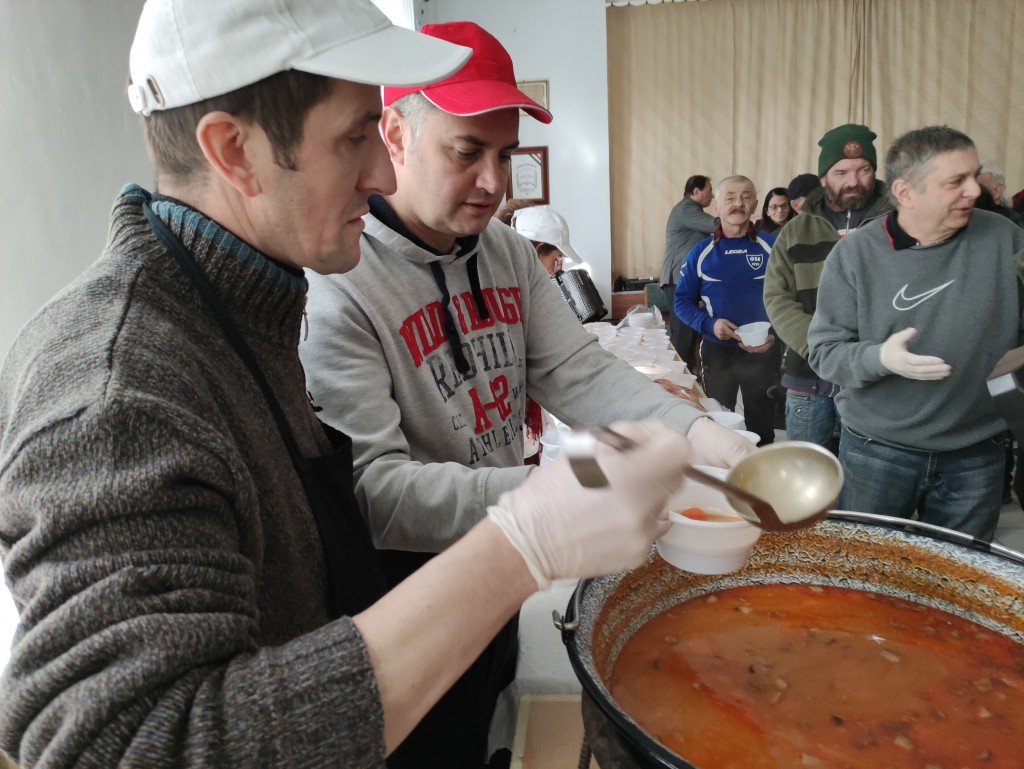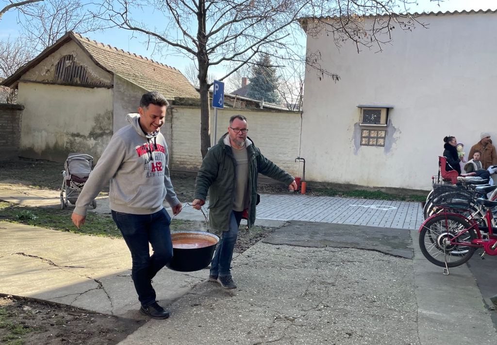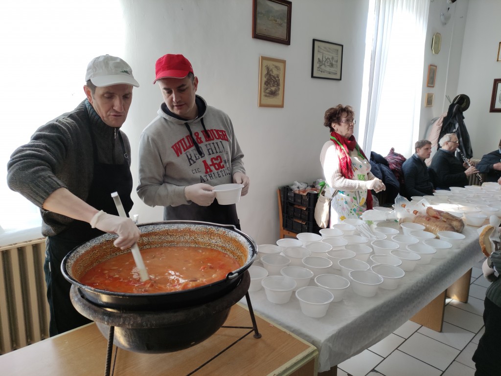 A szervezők egyébként nem csak betevőről, de a jó hangulatról is gondoskodtak, hiszen élőben szól a nóta a jó ebédhez, melyet déltől, délután 2 óráig osztottak. Volt mit, hiszen az udvaron két bográcsban is rotyogott az ennivaló.