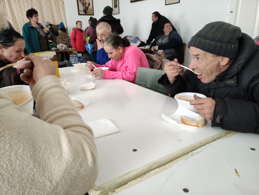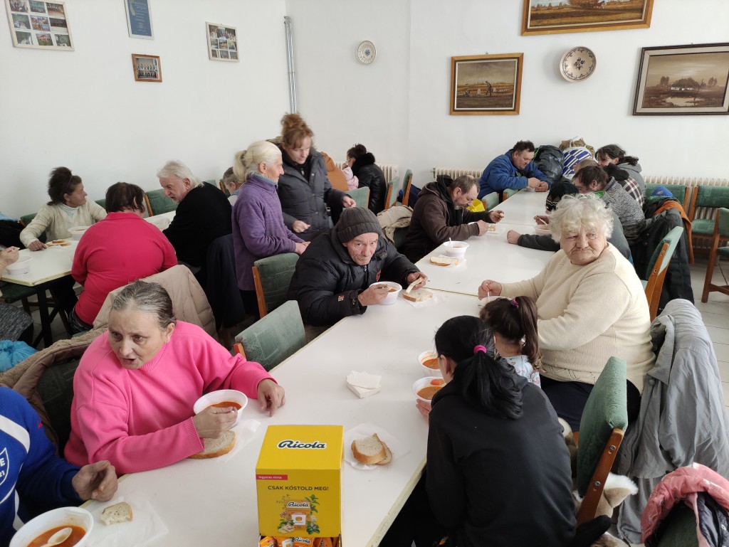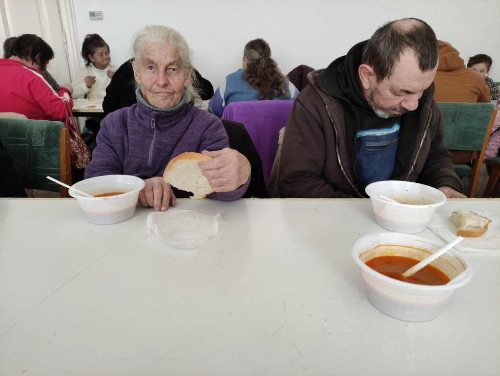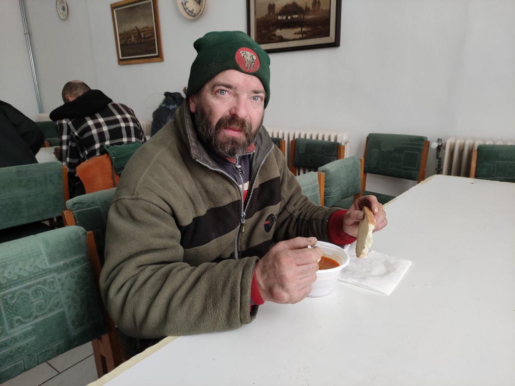– Nagyon finom az étel, köszönöm mindazoknak, akik lehetővé tették, hogy ma itt ebédeljünk. Mivel szegények vagyunk, örülünk, hogy a számlákat ki tudjuk fizetni, van, amikor nagyon kajára se marad pénzünk. Még jó, hogy kapunk a várostól élelmiszer utalványt – mondta Nagy István, aki a feleségével fogyasztotta el a jó sűrű ebédet. Hozzátette: most ruhát nem válogatnak, mert annyi holmijuk van, hogy az életük végéig elég lesz.