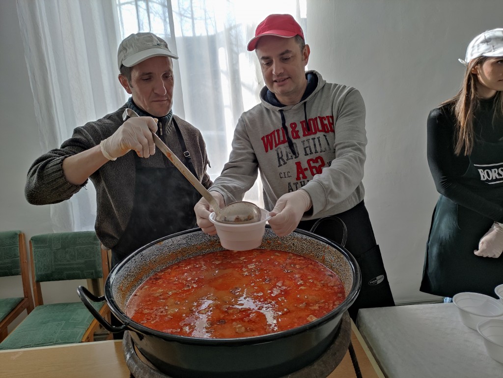 – Most egy kicsivel több ételt főztünk, mint legutóbb. Előzőleg 100 adag paprikás krumplit, most pedig 150 adag csülkös bablevest – árulta el Szabó Margit. A helyi Kossuth Kör tagja hozzátette: az adagok számát azért emelték meg, mert az előző ételosztás sikerét látva féltek, hogy kevés lesz az étel, ha nem főznek többet. – Nagyon sokan jöttek el, s nagyon örülünk neki, mert sok embernek tudtunk így ételt adni. Úgy tervezzük, két hét múlva ismét rendezünk ebédosztás, mert látszik, hogy nagyon-nagy igény van rá – tette hozzá.