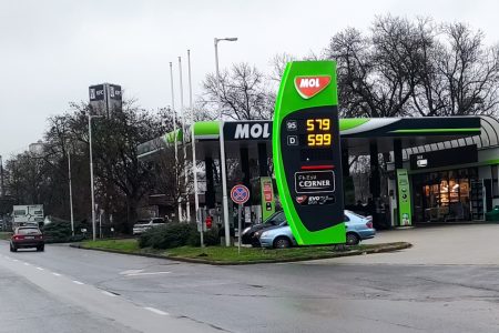 Január 1-től a benzinnél 152,55, a gázolajnál pedig 142,9 forint lesz literenként az adó mértéke. A képen az árak a Tóalj utcai MOL-kút totemoszlopán, december 7-én.