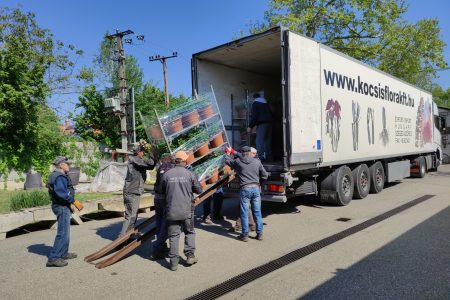 Két kamionnal érkezett meg azaz ötezer-hatszáz tő piros és rózsaszín muskátli ma a HMSZ Zrt. Vámház utcai telepére, melyeket ma és holnap helyeznek ki városszerte azokra a kandeláberekre, ahová egyébként is szokták. Idén díszbatáta is kerül melléjük.