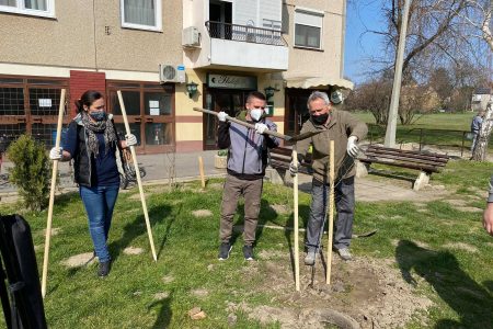 Összefogás eredményeként, a környékbeli lakók részvételével 80 pusztaszilfát ültettek ma az Eszperantó utcán, az Éva utcán átadták az új játszótéri elemeket.
