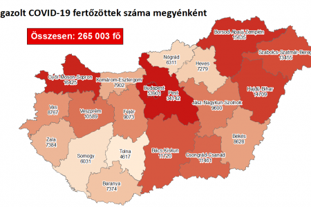 A kormányzati portálon azt írták: 265 003-ra nőtt a Magyarországon azonosított fertőzöttek száma. Az elhunytaké 6451-re emelkedett, a gyógyultak száma 77 362.