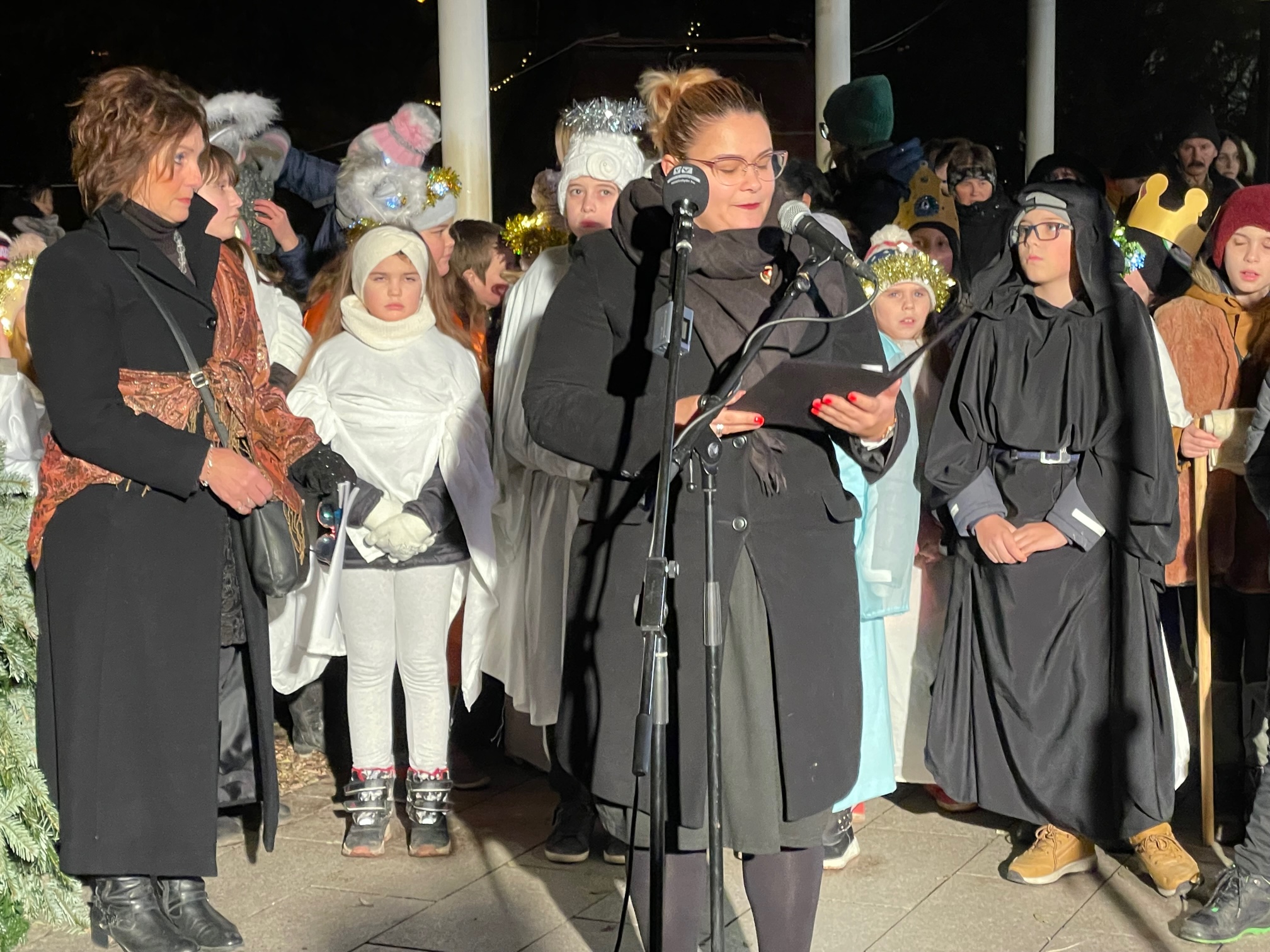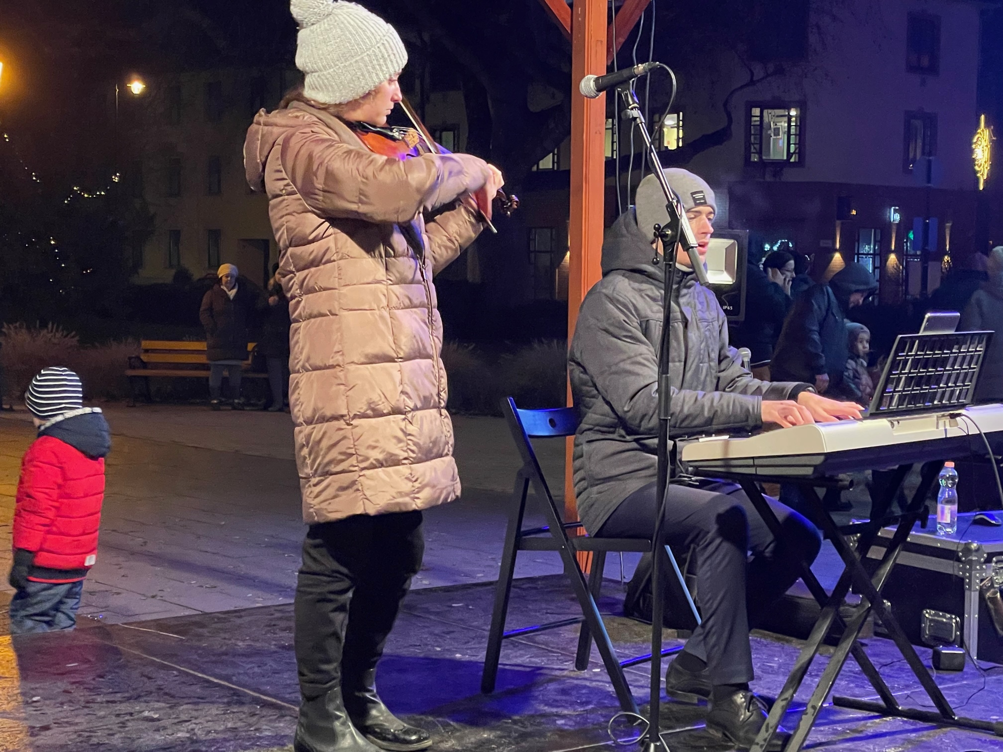A Klauzál Gábor Általános Iskola negyedikesei nagyon szívet melengető karácsonyi előadását Soós Virág és Hegyi Bálint énekei követték, akik a közönséggel együtt karácsonyi dalokat énekeltek.