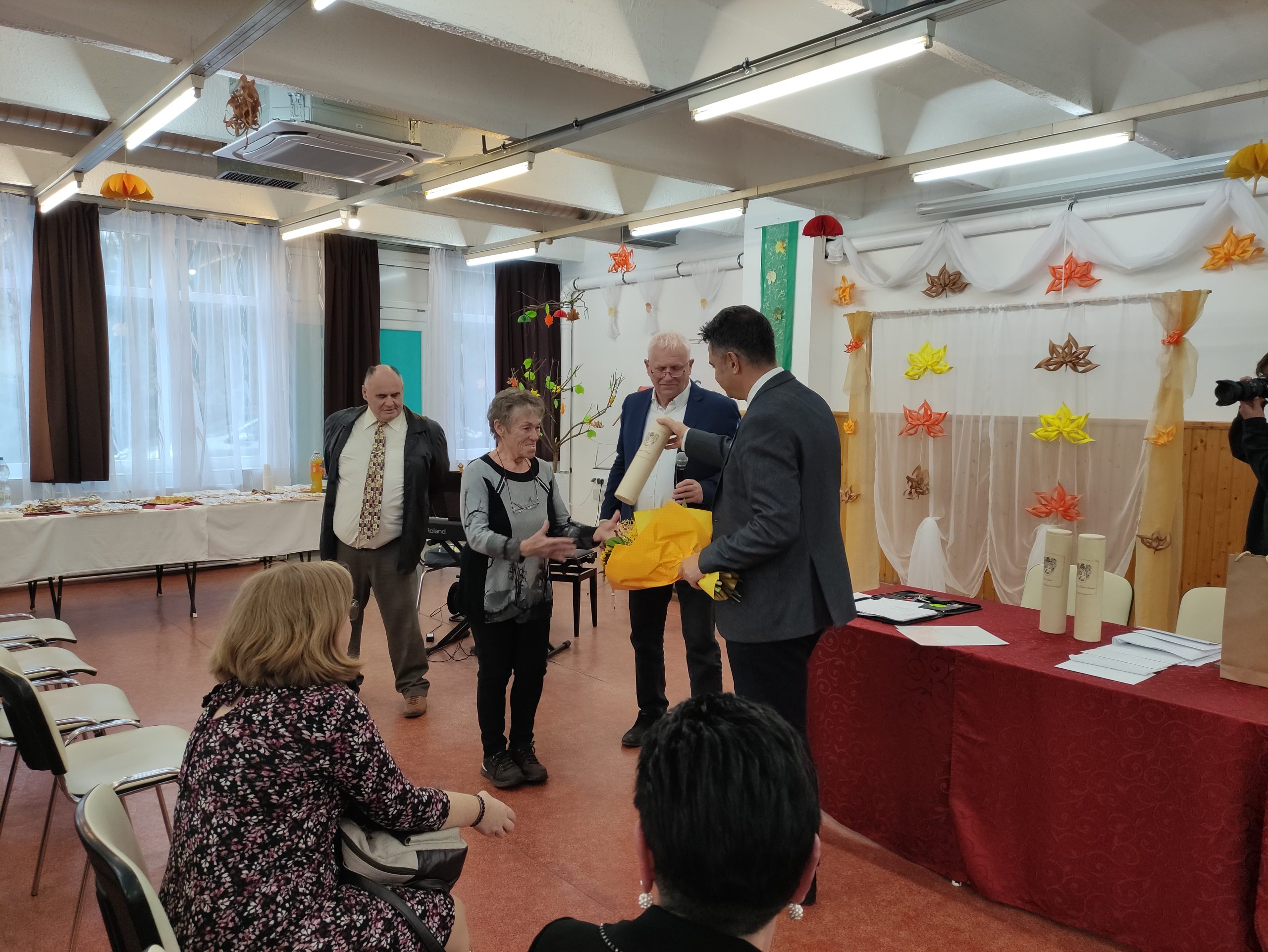 Márki-Zay Péter polgármester és Lajos Tibor, a Kapcsolat Központ főigazgatója köszöntötték a szociális szférában dolgozókat, és adtak át kitüntetéseket a Szociális Munka Napja alkalmából a Kovács-Küry Idősek Otthona ebédlőjében, kedden kora délután.