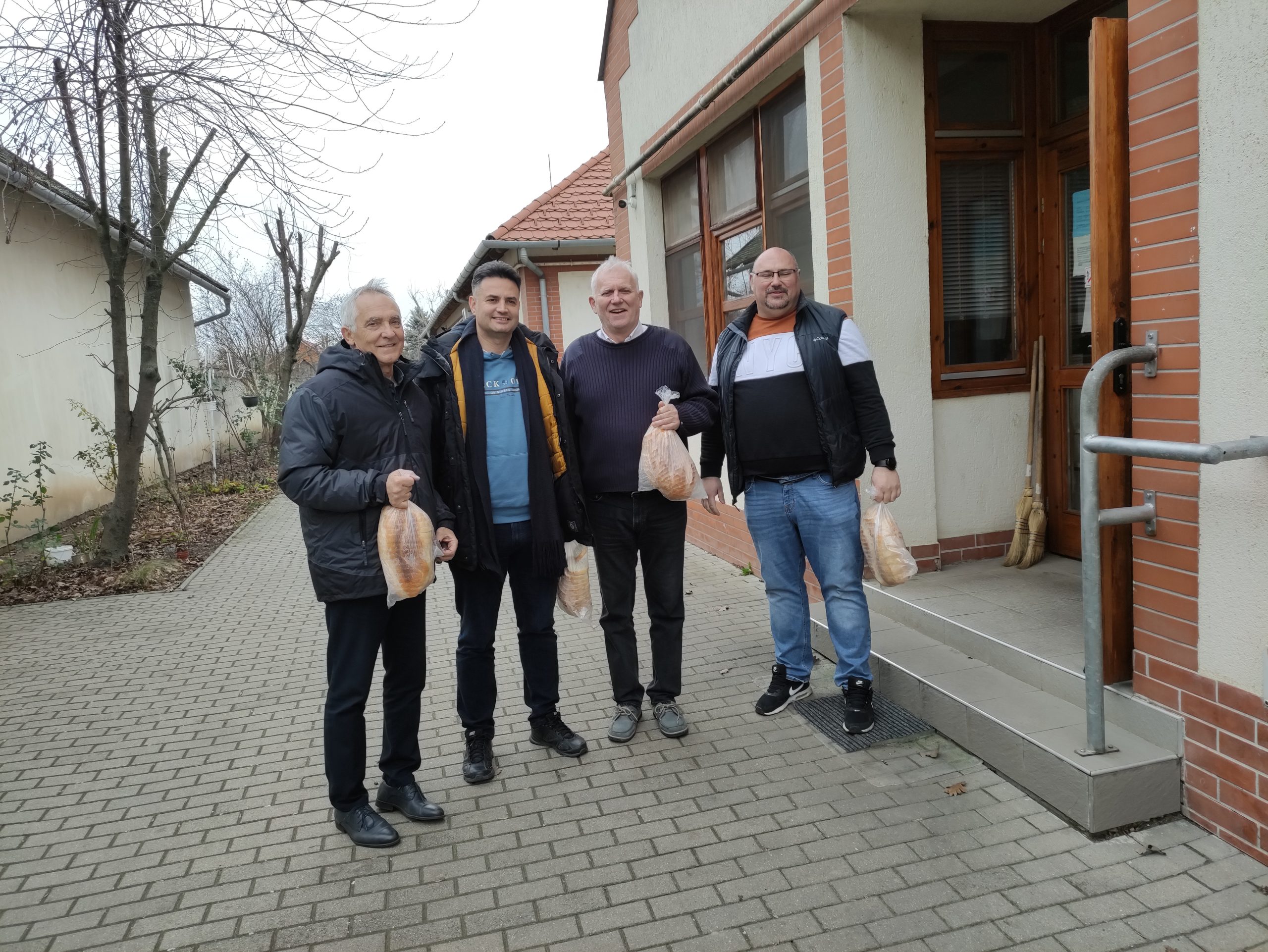 Szerda délben immár nyolcadik alkalommal vittek ebédet a vásárhelyi hajléktalanszálló lakóinak a városvezetők, Márki-Zay Péter polgármester, Berényi Károly és Gyöngyösi Ferenc alpolgármesterek. A vendéglátók chilis babbal és apró svájci csokoládékkal lepték meg a szálló lakóit, akik első alkalommal karácsonyi műsorral is készültek az alkalomra.