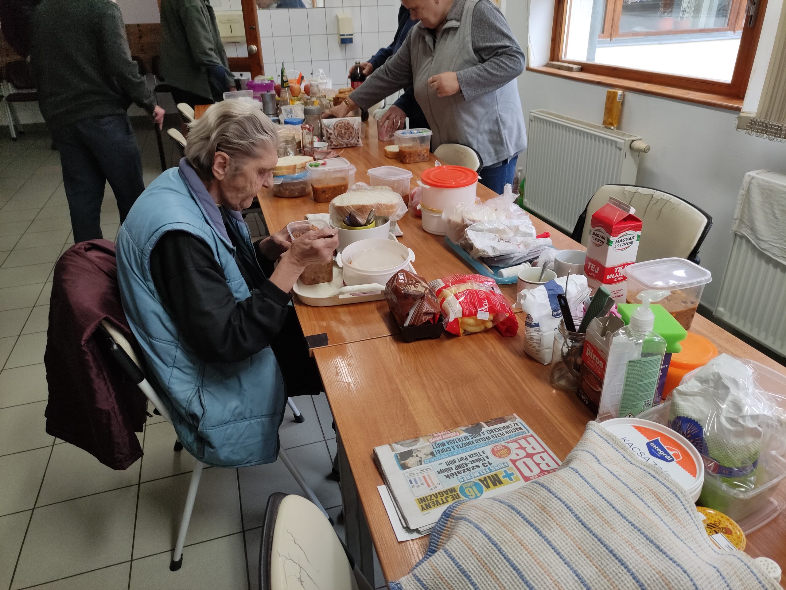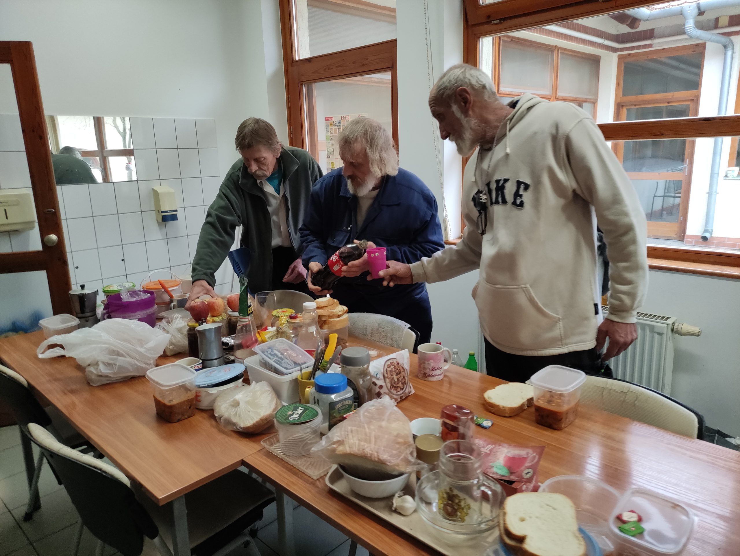 A hajléktalanszálló lakói a kapott ételt felmelegítették, és ebédre el is fogyasztották. Maradt belőle azoknak is, akik napközben az utcán töltik idejüket, és csak éjszakára térnek vissza a Csomorkányi utcai hajléktalanszállóra.