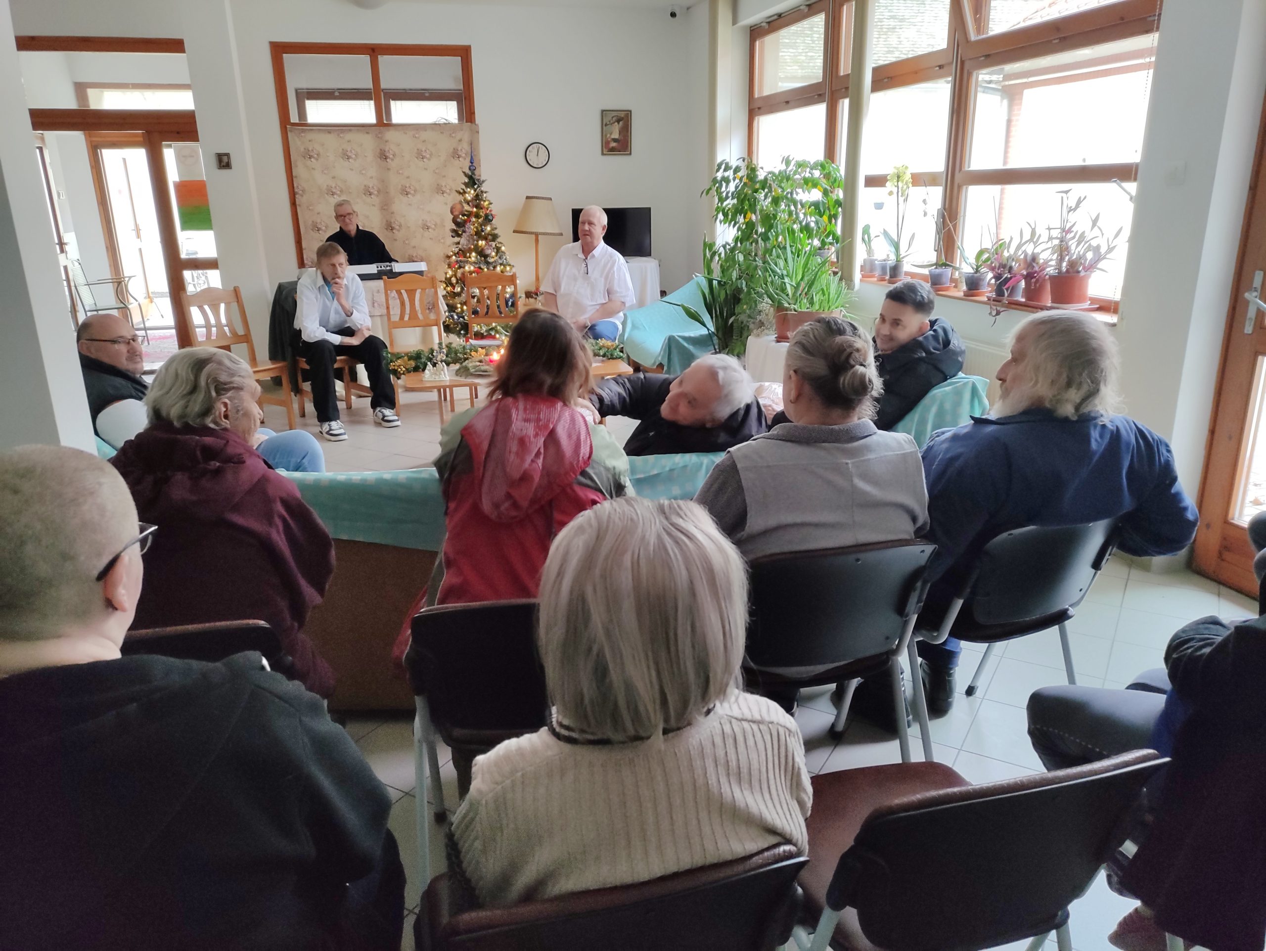 A szálló lakói megható, zenés karácsonyi műsorral viszonozták a polgármester és az alpolgármesterek gesztusát, és többek között Márai Sándor és Juhász Gyula, az ünnepről, a karácsonyról, a békességről és a szeretetről szóló gondolataival örvendeztették meg a jelenlévőket és az otthon lakóit.