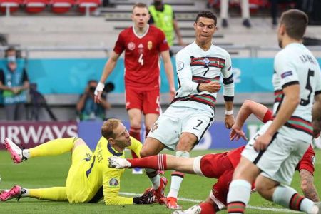 Hogy aztán még fel se ocsúdjon a magyar válogatott, amikor Orbán visszarántása után fújta be a jáűtékvezető 11-esre a szituációt, amit Ronaldo értékesített. Először lőtt gólt Magyarországon. (0-2)