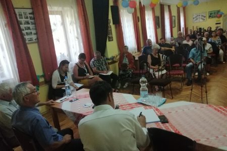 „Jó estét kívánok, Ciricai Ernőné vagyok még mindig a Berkenye utcából, már pár alkalommal ígéretet kaptam, amivel már a padlásunk is tele van” – kezdte melankólikus dühvel egy idősebb hölgy az első sorokból. Arról beszélt, a város többször is azt ígérte, megcsinálják az utcájukban a vízelvezető árkot, de erre nem került sor. Azt is igyekezett megtudni, miért nem tudják bejelenteni a gázórájuk fogyasztását, aztán ráfordult az utcában lévő kocsmára. „Ez szabályosan tragédia, annyira szutyok, hogy egyszerűen elviselhetötlen” – fakad ki. Mint mondta, egy fiatalember a posta előtt időnként társadalmi munkában takarít, ő ugyanezt teszi a Berkenye utca sarkán, de borzasztó az állapot. „Nem tudom, kinek az engedélyével, de még a járdaszakasz is le van zárva” -panaszolta. Mint mondta, ha esik az eső, vagy télen jegesedés van, nem lehet közlekedni. – Sajnos beteg az asszonyka, nem tudott eljönni, hogy ezt elmondja – zárta volna, de az érintett lakó ott volt, mondták többen a sorokból, majd ő maga is. „Itt vagyol drága Icuskám?” – köszöntötte. „Itt is vannak gyerekek, a kocsma előtt ott ülnek, dajdéroznak, szóval borzasztó. Nem tudom, ez másnak szúrja-e a szemit, de nekünk nagyon” – summázott.