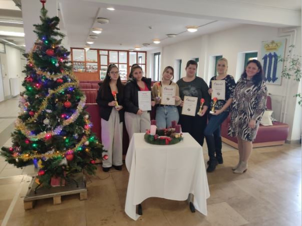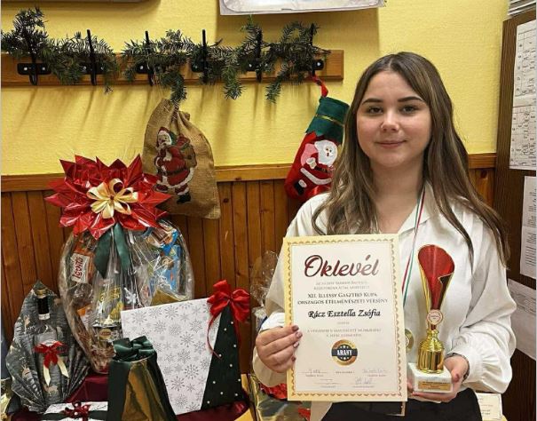 3. egyéni versenyző – Rácz Esztella Zsófia 13. A osztályos (kereskedő és webáruházi technikus) tanuló – aranyérem. Vanessza, Kitti és Esztella a 2023/2024-es tanévben a kiskunfélegyházi országos díszcsomagoló versenyen is részt vettek és 1. helyezést értek el az üveg csomagolásban.
