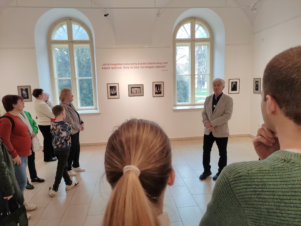 Szombaton délután mintegy negyvenen vettek részt Dömötör Mihály DM 75 – A melankólia képei című tárlatának közönségtalálkozóján és alkotói tárlatvezetésén az Alföldi Galériában. A fotóművész helyben „állított be” árnyképeket.