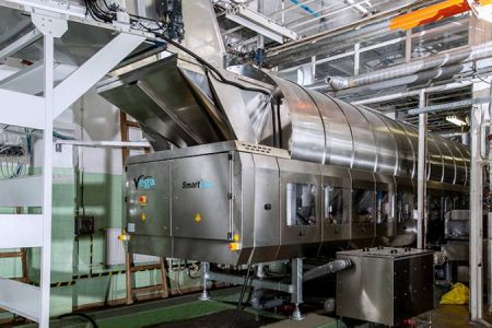 A mosás egyes fázisait – áztatás, mosószeres mosás, öblítés – külön kamrákban, elkülönítve végző csőmosó gépet és a szintén újonnan beszerzett présgépet úgy állították be, hogy óránként 1200 kilogramm ruha tisztítására legyen alkalmas. A 14 méter hosszú, 12 tonna tömegű csőmosógép 60 kilogramm töltetű, egy kiló kórházi textília mosásához csak 3-3,5 liter vizet használ. A régebbi generációjú, akár 20-40 éve Magyarországon működő csőmosógépek 95 százaléka kilogrammonként 10 liter vízzel mos, ezekhez képest az új berendezéssel több mint 50 százalékos vízmegtakarítás érhető el. A hatékonysághoz nagyban hozzájárul a szintén 60 kilogramm töltetű és 47 bar nyomású présgép is, amely olyan nagy nyomással préseli ki a vizet a kimosott textíliából, hogy azt nem kell szárítani a vasalás előtt. A korszerű géppark környezetkímélő, alacsony mosási hőmérsékleten is megfelel az egészségügy higiéniai igényeinek.