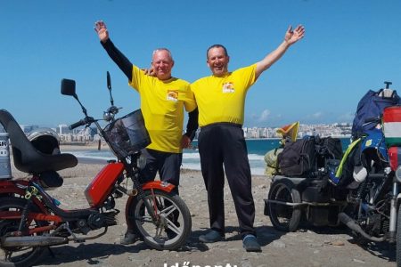 A szatymazi Farkas Gábor és jó barátja, a hódmezővásárhelyi Barta Zsolt még tavaly kerekedtek fel, hogy az egykori kelet-német gyártmányú, annak idején főleg a lányok, asszonyok körében közkedvelt segédmotorral eljussanak Afrikáig. Tavaly április 25-én indultak Szegedről a több ezer kilométeres túrájukra, s májusban értek el Marokkóba.