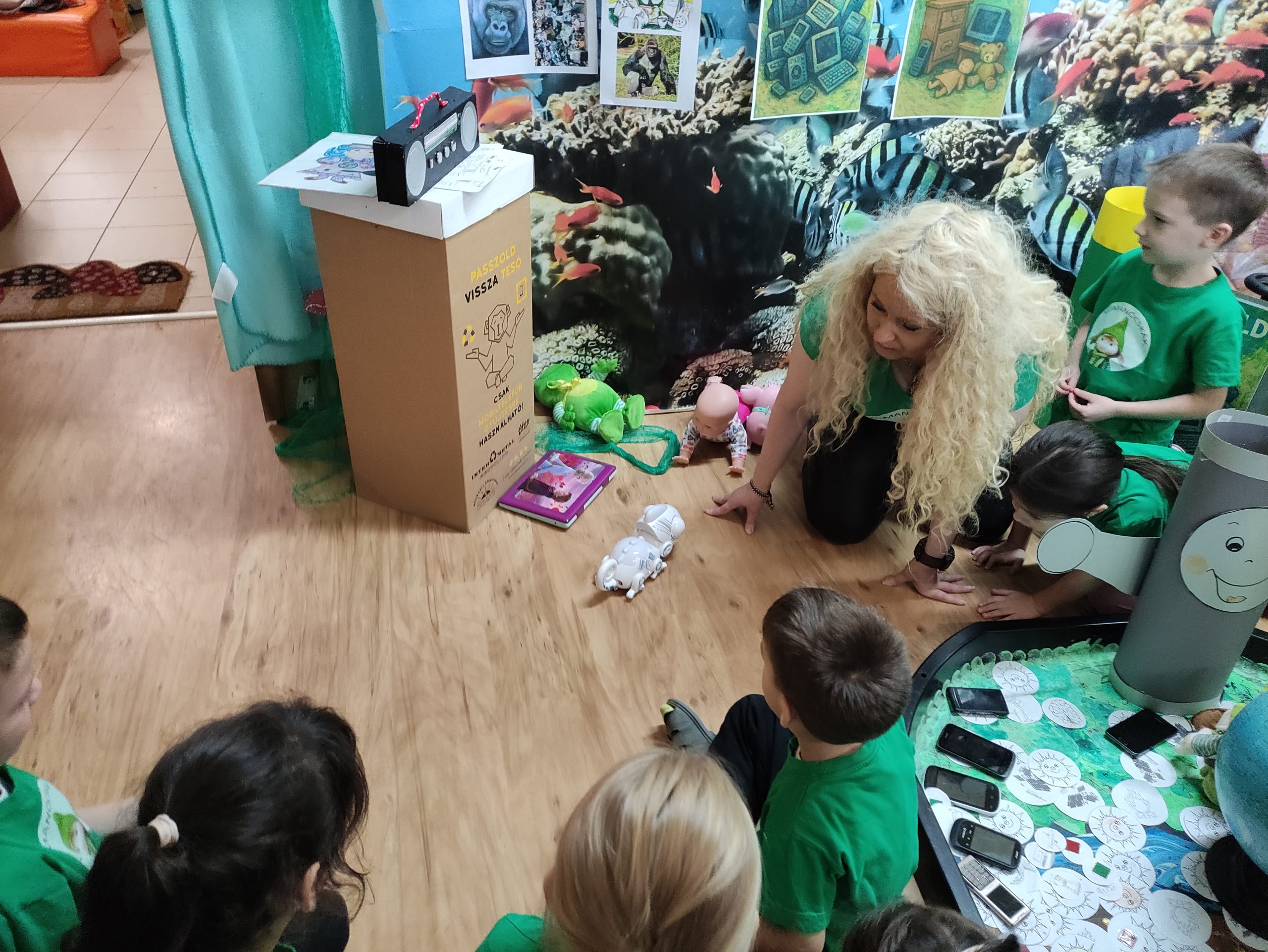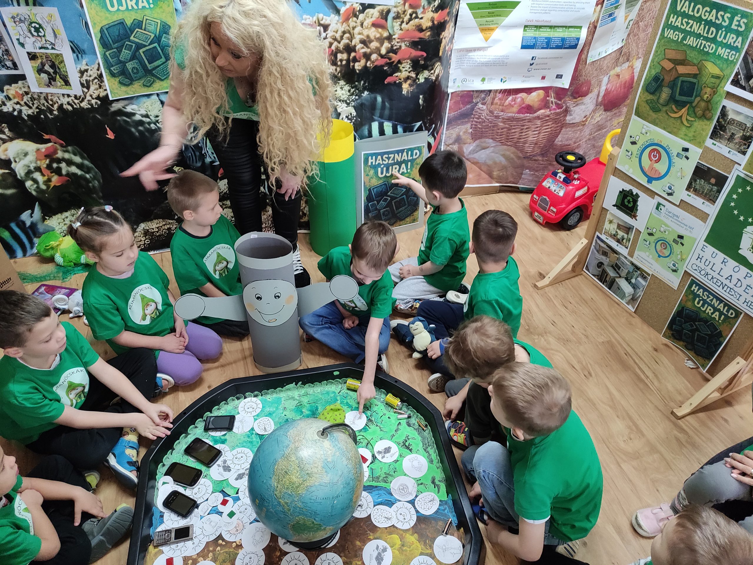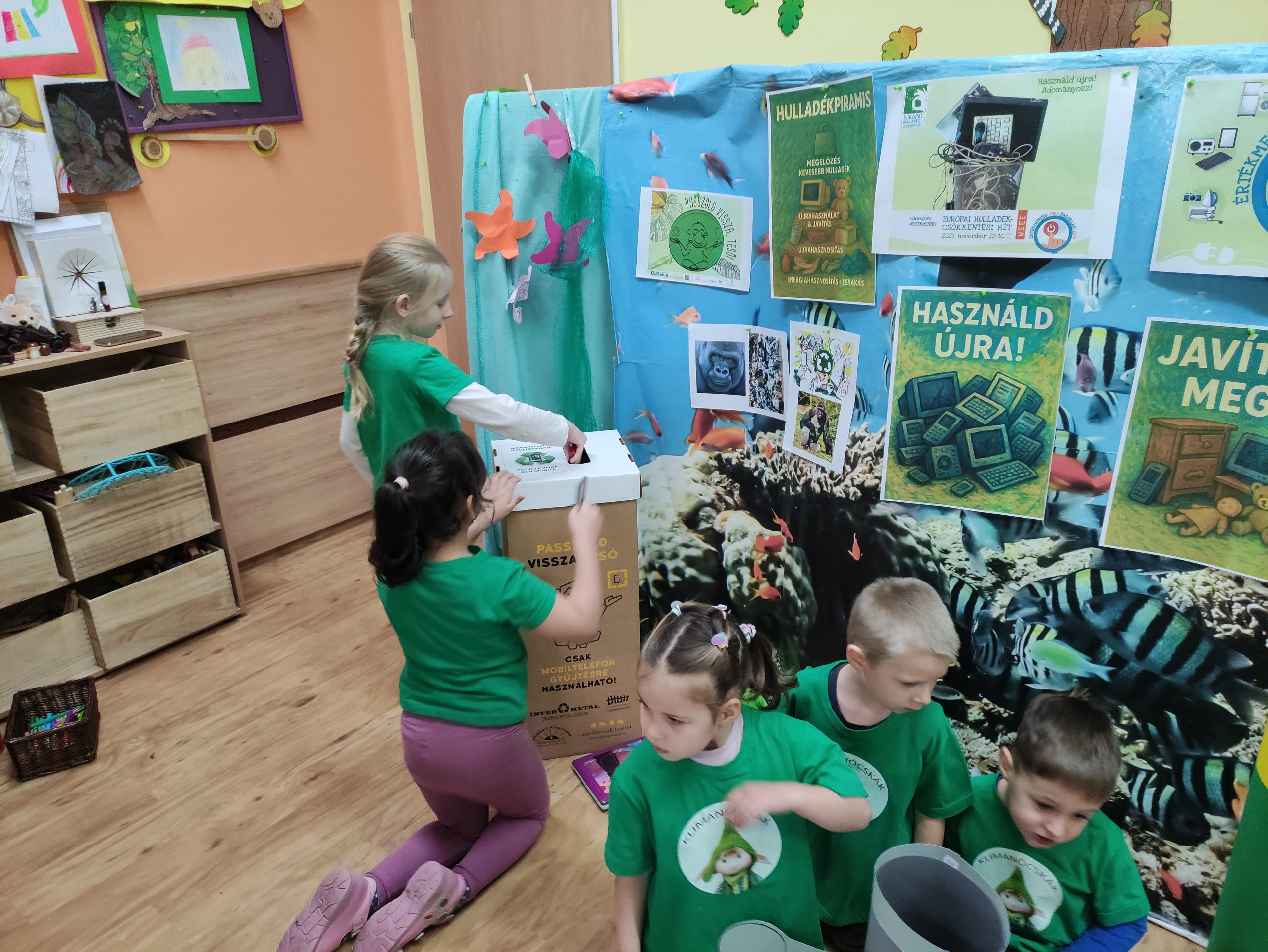 Az e-hulladék témája az óvodások számára különleges és újszerű, ráadásul minden szülő aktívan bekapcsolódott a projekt megvalósításába. A gyerekek játékos formában ismerkedtek meg a témával: „Játékországba” és „Energiaországba” kalandoztak, ahol megtanulták, mi történik a használt elemekkel, telefonokkal, mit jelent maga az e-hulladék, hova kerül, és milyen károkat okozhat a környezetben. És persze szelektíven válogatták a szemetet, házi mosószert készítettek, kifestették a robotokat és maguk is játszottak olyan elemes játékokkal, melyeket otthonról hoztak erre az alkalomra. De helyükre kerültek a kimerült elemek is, mégpedig az elemgyűjtőbe!