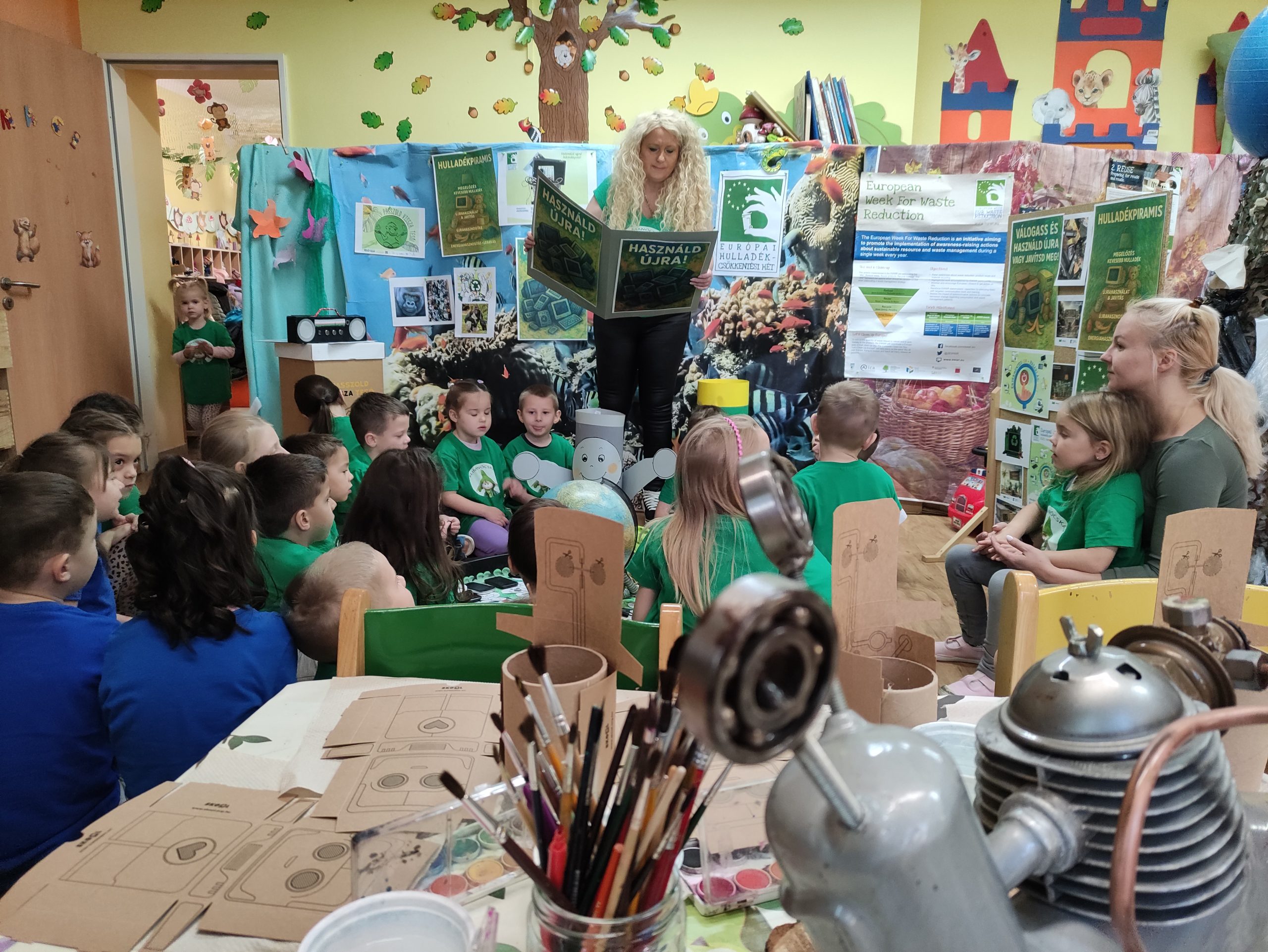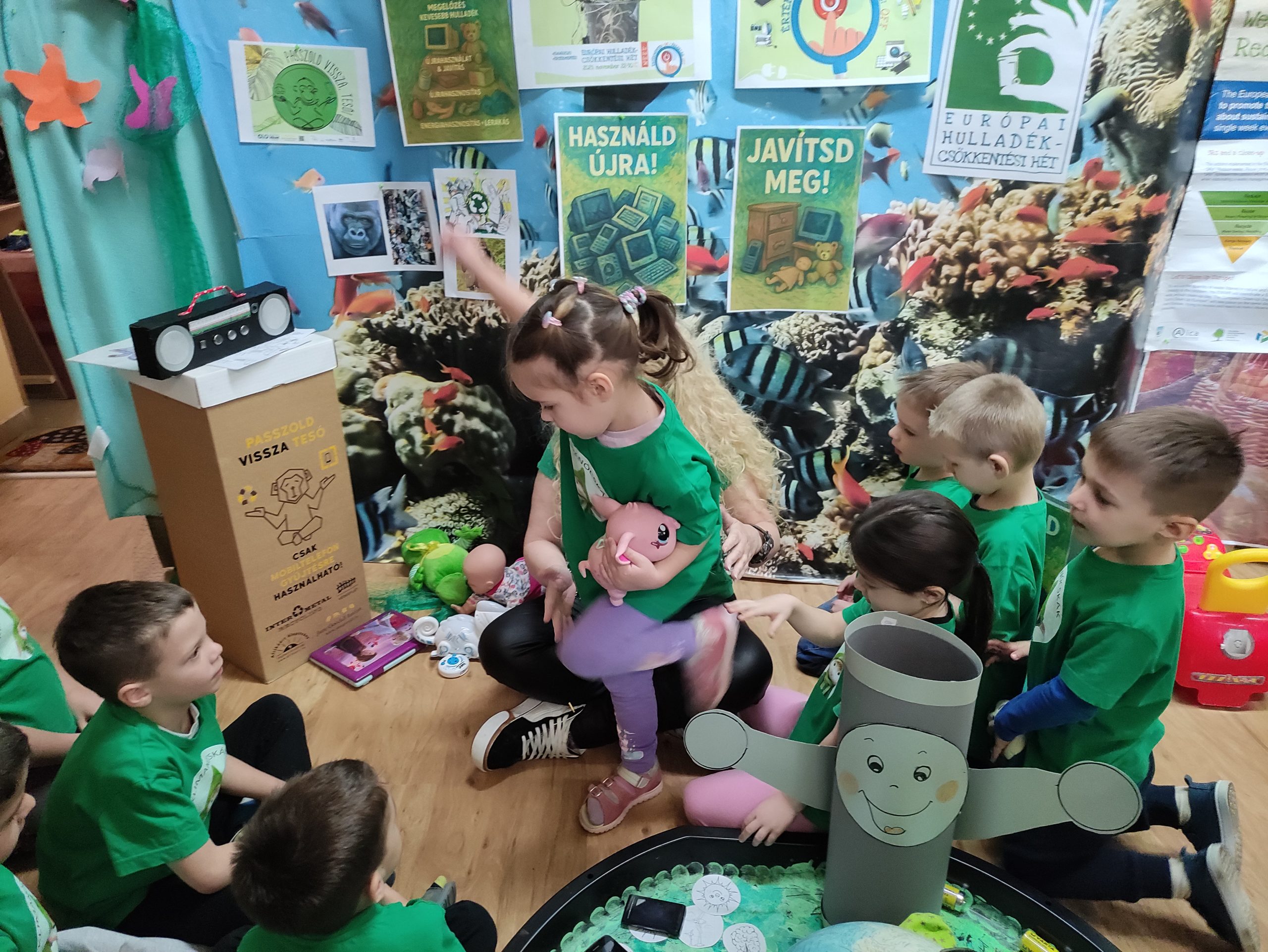 Az óvodások számára egy „hulladékpiramist” is készítettek, amely segítségével megmutatták, hogyan lehet vigyázni például az elemes játékokra, miért érdemes javítani őket, és miért fontos, hogy a családok elkerüljék a túlvásárlást.
