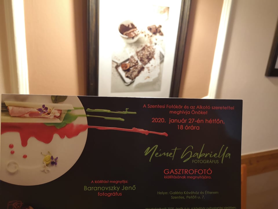 Német Gabriella fotográfus nyers alapanyagokból és készételekből olyan kompozíciókat állított össze, amelyek így művészeti alkotásokká lettek. A falra került képek közül akad olyan, amely díjat nyert nemzetközi megmérettetésen. A vásárhely fotográfus, Baranovszky Jenő köszöntőjében kiemelte Gabriella játékos szemléletét, az újdonságra törekvő látásmódot, a bátor próbálkozásait, amely az egész képalkotási tevékenységét jellemzi. A szokatlan művek, melyeken – természetesen kinek-kinek mást üzenve – saját szemünkkel is láthatjuk, hogy a pulykanyak vicces, a csokiszósz kaotikus lehet, jelenleg a szentesi Galéria Kávéházban láthatók.