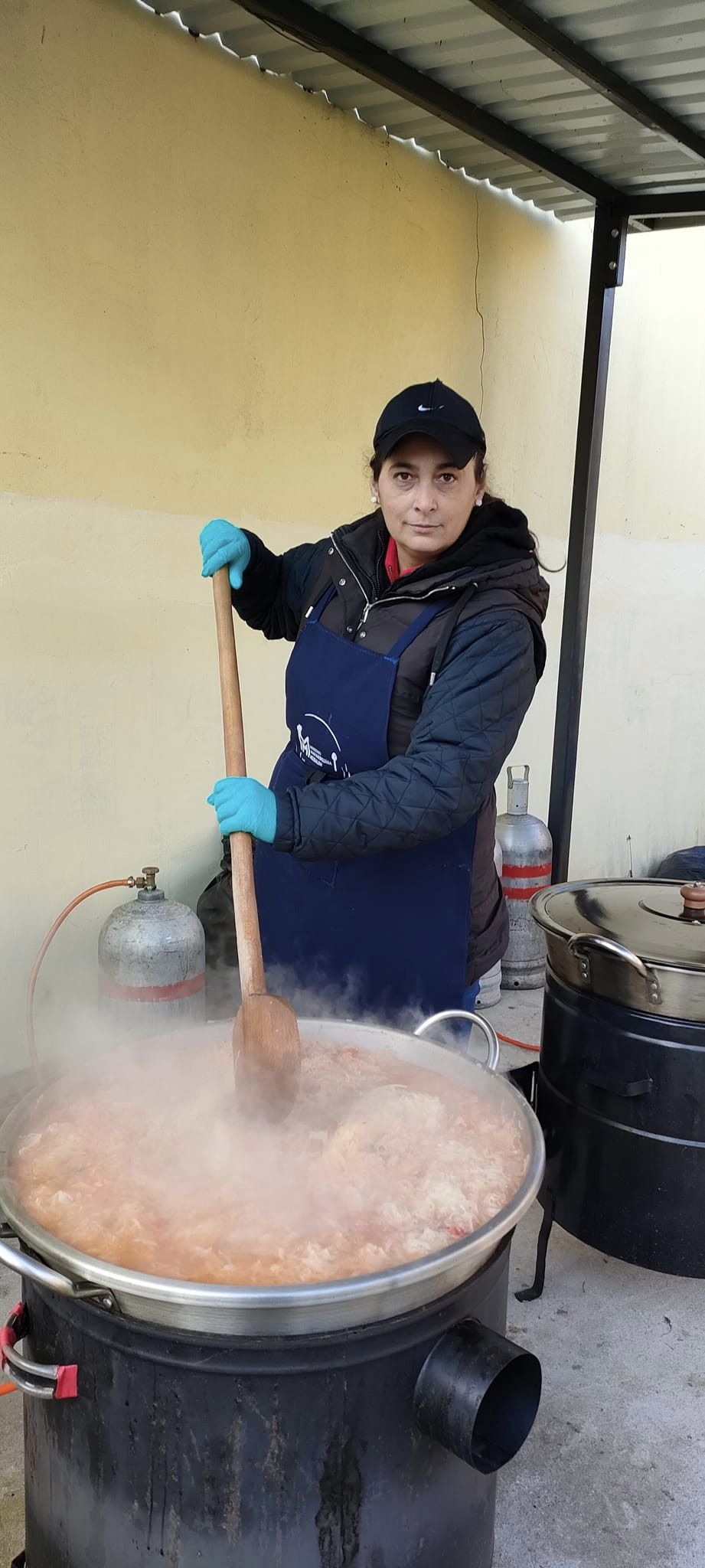 Számos meleg ruha talált gazdára, és elképesztő illatok terjengtek a levegőben. A menü ma húsoskáposzta volt, bokolival, azaz cigánykenyérrel. A vásárhelyi Cigány Nemzetiségi Tanács tagjai: Gavodi István, Kiszin László, Tóth István, Ferkovics Menyhért, Kállai György, Matyi Sándor, valamint rajtuk kívül dr. Berényi Károly finanszírozták a több mint háromszáz adag ételt. A húsoskáposzta és a csomagolt süteményszelet egy részét helyben fogyasztották el a rászorulók, de mintegy kétszáz adagot a Kossuth körös önkéntesek dobozolták és szállították ki.