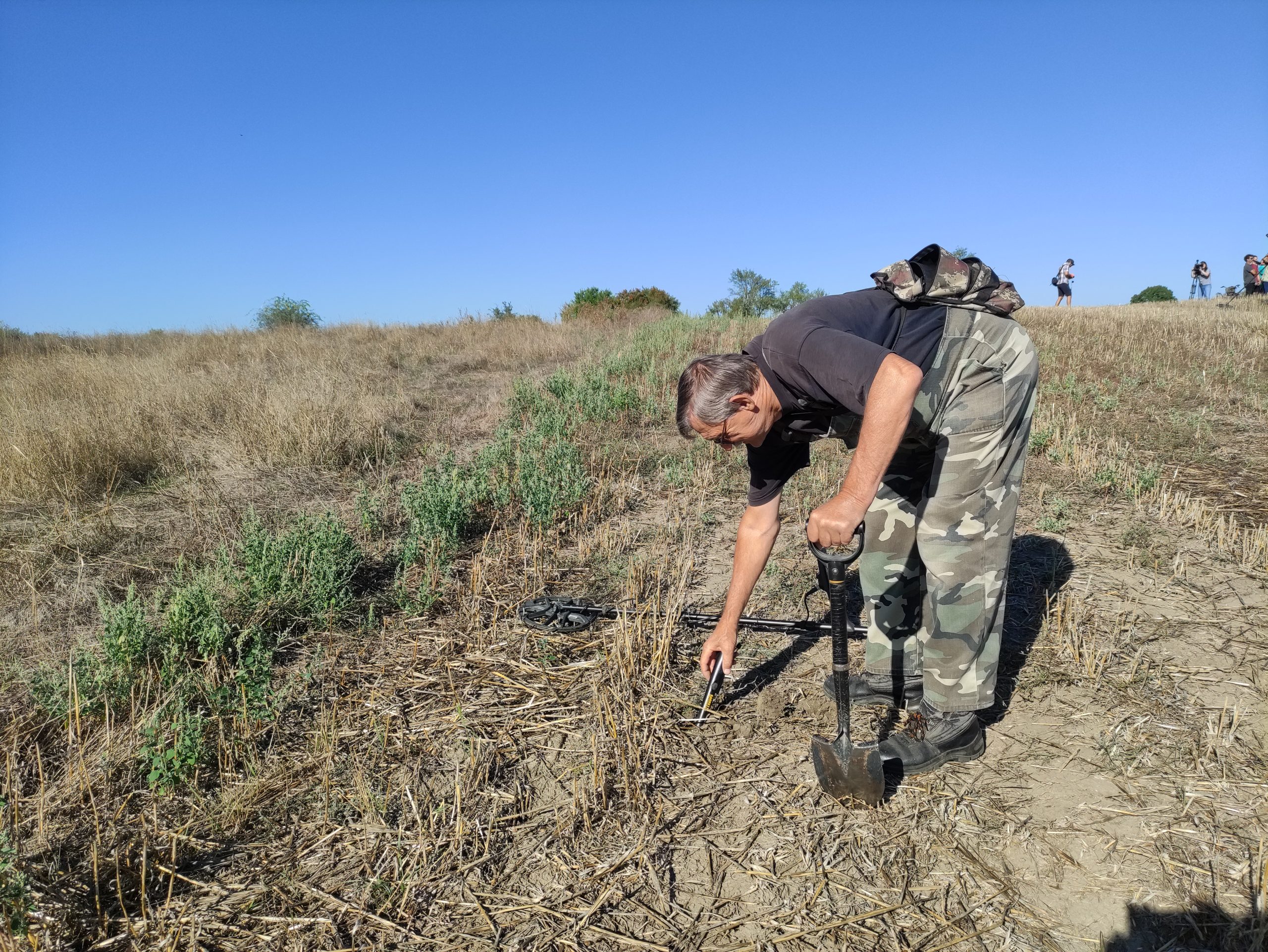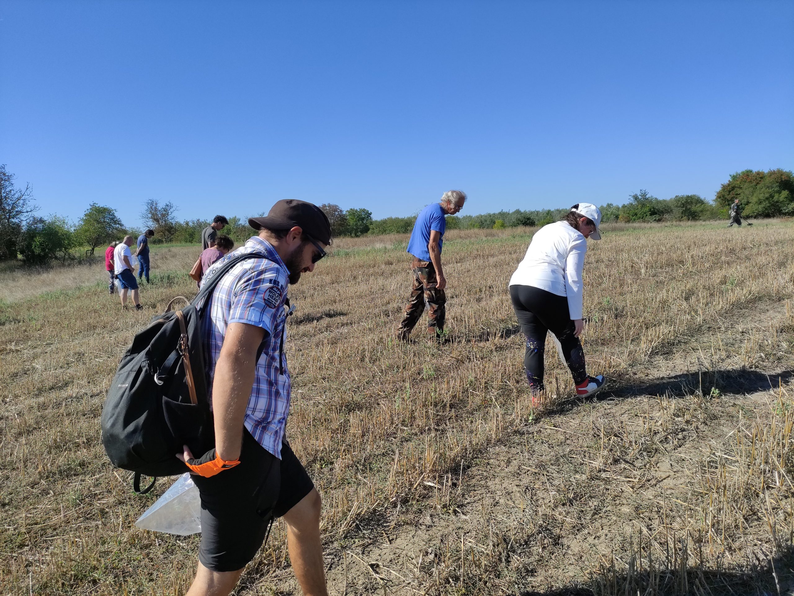 Az előadás közben a múzeum szakemberei fémdetektorokkal is átvizsgálták a területet. A sok söröskupak mellett egy valószínűleg középkori csatra is rábukkantak. A résztvevők végül maguk is kipróbálhatták a terepbejárást: csatárláncban kutattak a földfelszínen található cseréptöredékek után. A régészek egy maroknyi leletet meg is mutattak nekik, hogy felismerjék mit kell keresniük. A terepbejáráson főként középkori agyagedény- és fazéktöredékek kerültek elő, köztük egy különleges darab, amelyet egykor felfüggesztés céljából fúrtak át. Néhány perccel később ennek másik felére is rábukkantak.