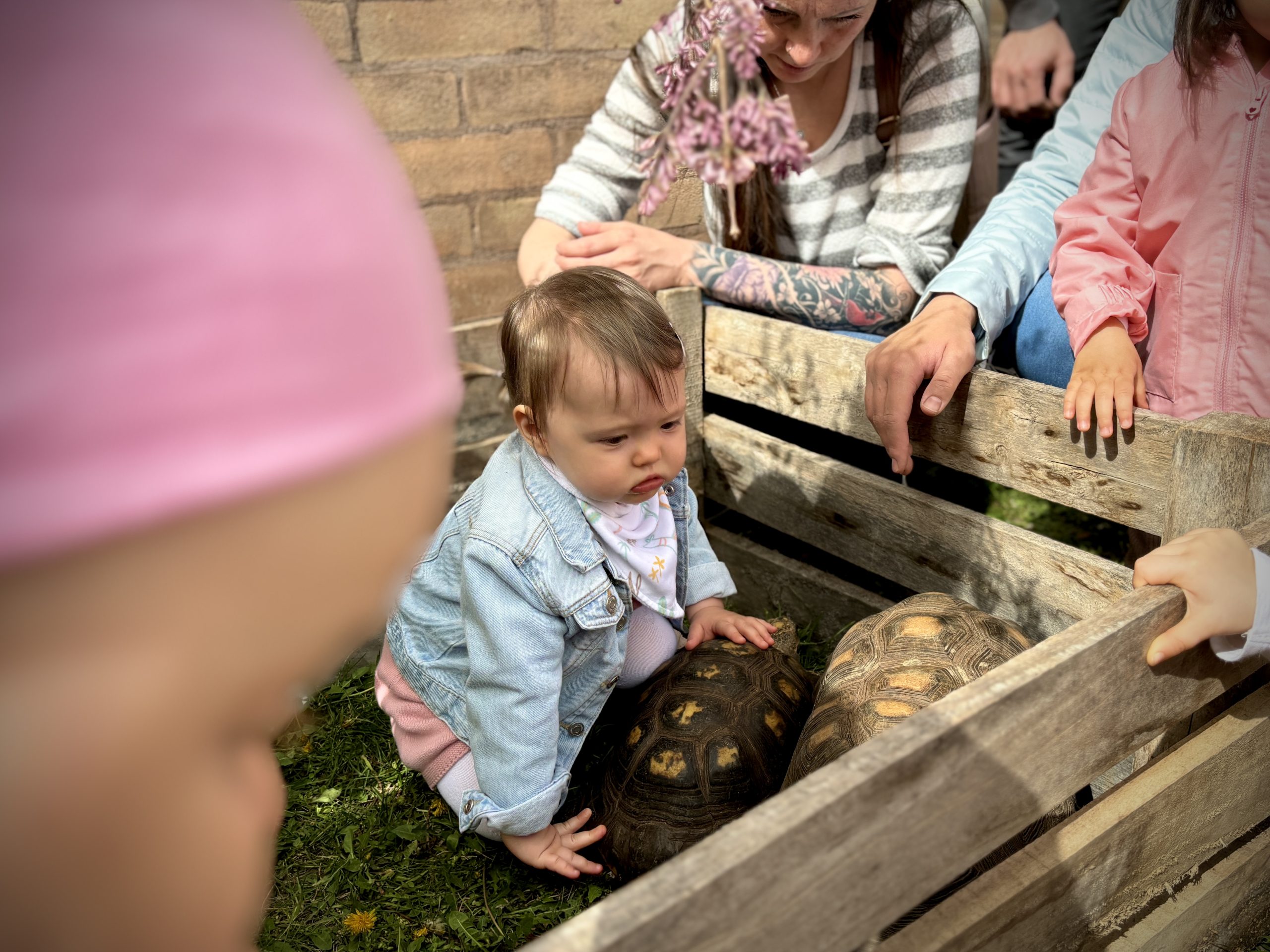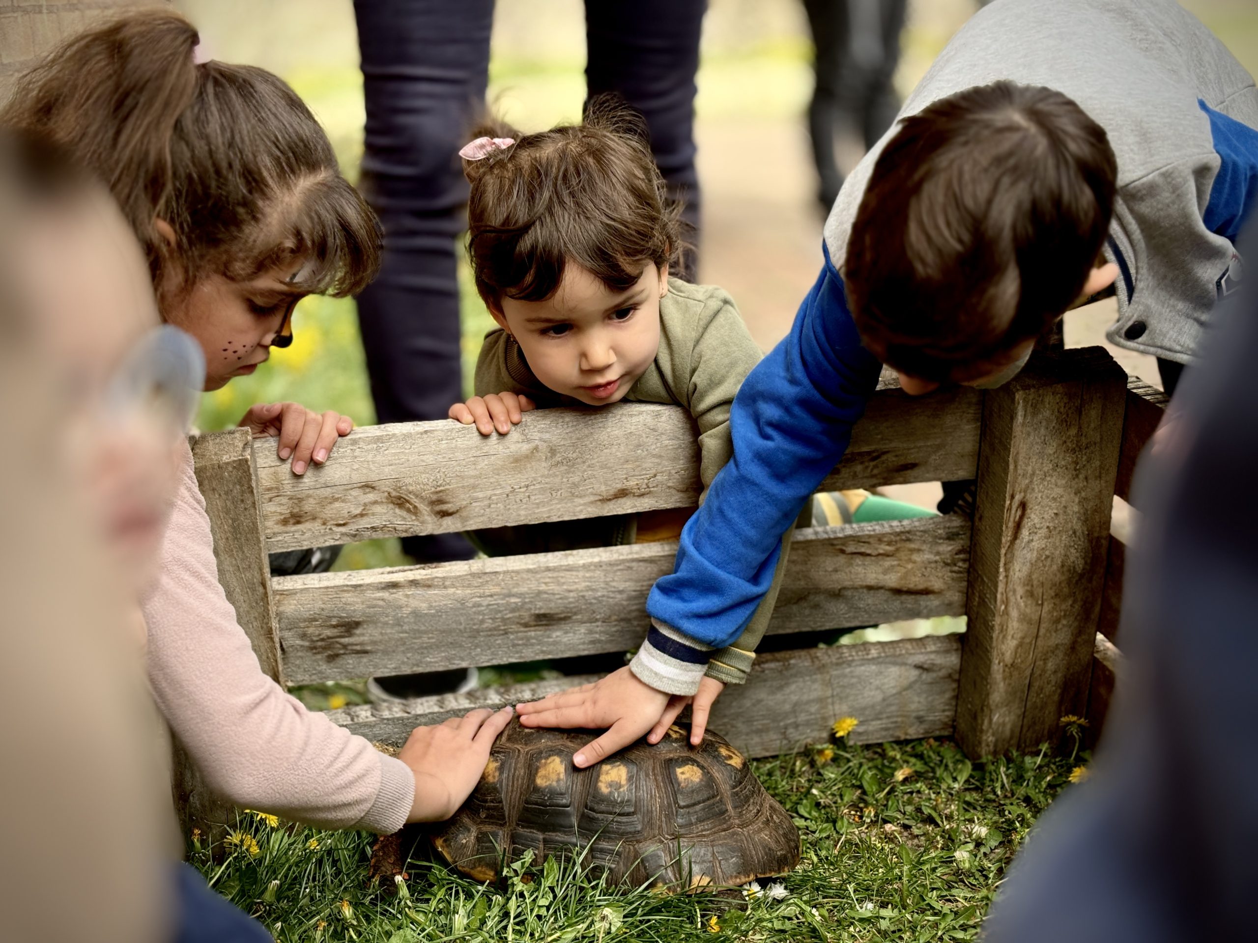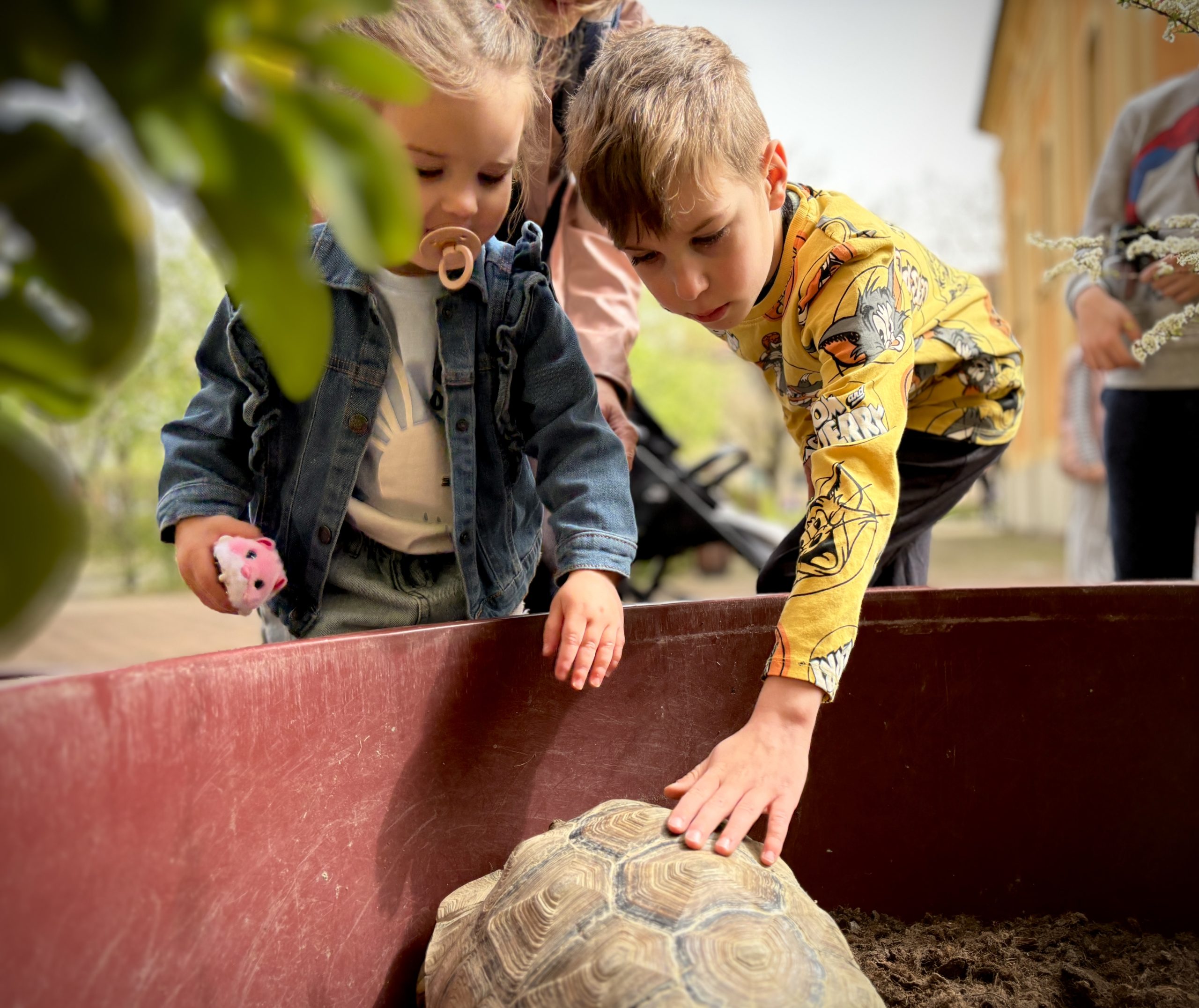 Sirkó Zoltánnak köszönhetően ezúttal nem csak nyuszit lehetett simogatni, hanem teknősöket is, a világ minden tájáról. A gyerekeknek érdekes volt összehasonlítani a teknősöknek kemény páncélját a nyuszik puha bundájával.