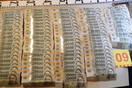 Egy tizennégy fős bűnbanda tagjai voltak. Ketten Angliából hívogatták a gyanútlan áldozatokat. A képen a bandától lefoglalt pénz. Fotó: police.hu.