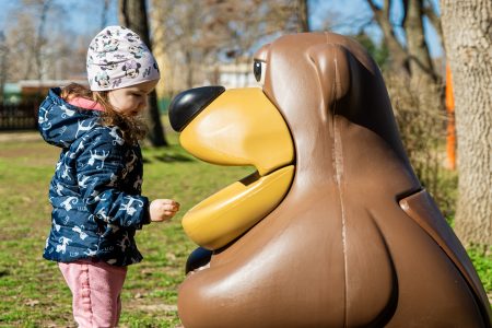 A Népkerti játszótérre érkező gyerekek máris kíváncsian közelítették meg, simogatták és ki is próbálták az újonnan kihelyezett első macikukát. A kommunális hulladék gyűjtésére alkalmas tároló 57-féleképpen tud pozitív visszajelzést adni annak, aki beledobja a szemetét.