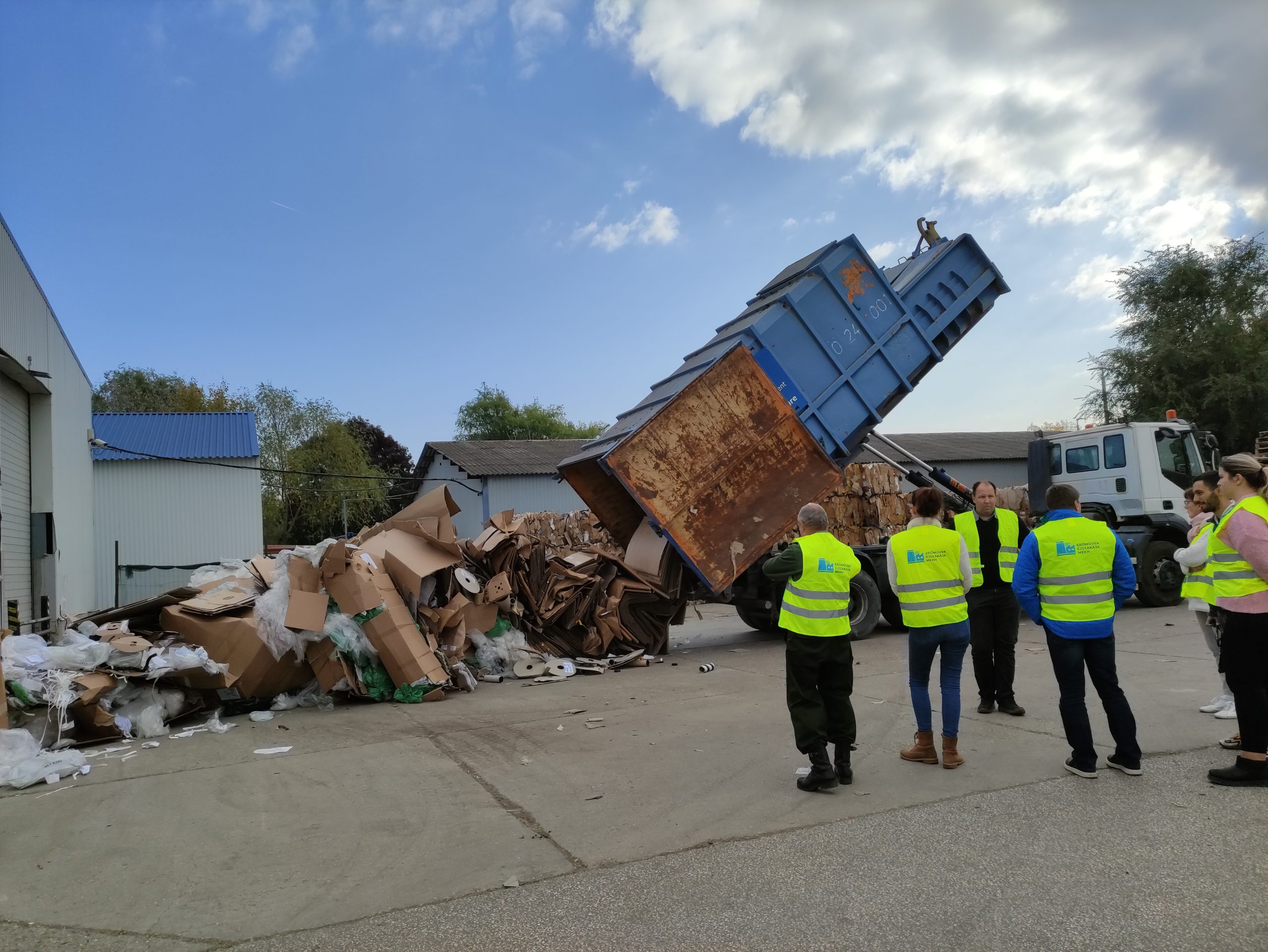 Az FCC Regionális Hulladékkezelő Központ maroslelei úti telepén a túra a látogatók számára munkavédelmi oktatással kezdődött, amire azért volt szükség, mert a lerakón autók és teherautók mozogtak, és előfordulhatott, hogy leesett róluk olyan hulladék, amelyre rálépve akár sérülés is történhetett volna. Ilyen esetre szerencsére nem került sor, de a papír- és műanyagbálázóhoz éppen akkor érkezett egy teherautó, mely konténeréből nagy mennyiségű bálázandó anyag került a földre.
