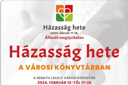 A Németh László Városi Könyvtár 2024-ben is csatlakozik a Házasság hete országos programsorozathoz, melynek keretében beiratkozási akcióval várják a házaspárokat. A hét jelszava: Állandó megújulásban.