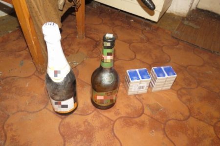 A 36 éves férfi némi szeszes ital és akácfát készített össze magának, amikor megérkezett a tanya tulajdonosa a rendőrökkel együtt. Fotó: police.hu.