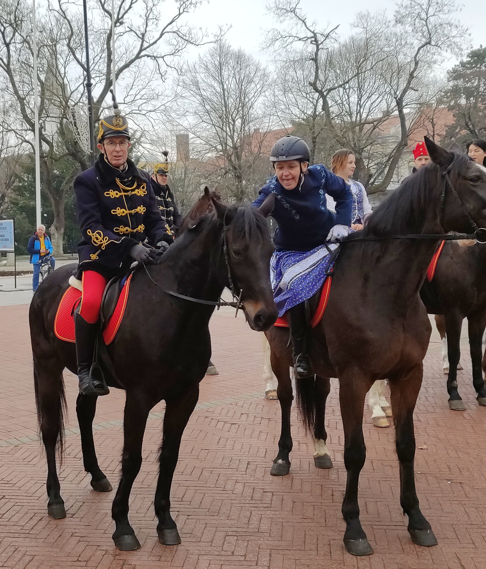 – Az egyik ismerősünk hívott ide bennünket, de egyébként minden lovas programon ott vagyunk, a kislányom nagyon szereti – mondta Paku Fruzsina. Kislánya, Sütő Androméda elmondta, hogy nagyon tetszettek neki a huszárok. Fruzsina testvére, Anett szerint a huszárok gyönyörűek, a lovak pedig különösen szépek, és az egész menet nagy élményt jelentett számára, hiszen amúgy is szereti a lovakat.