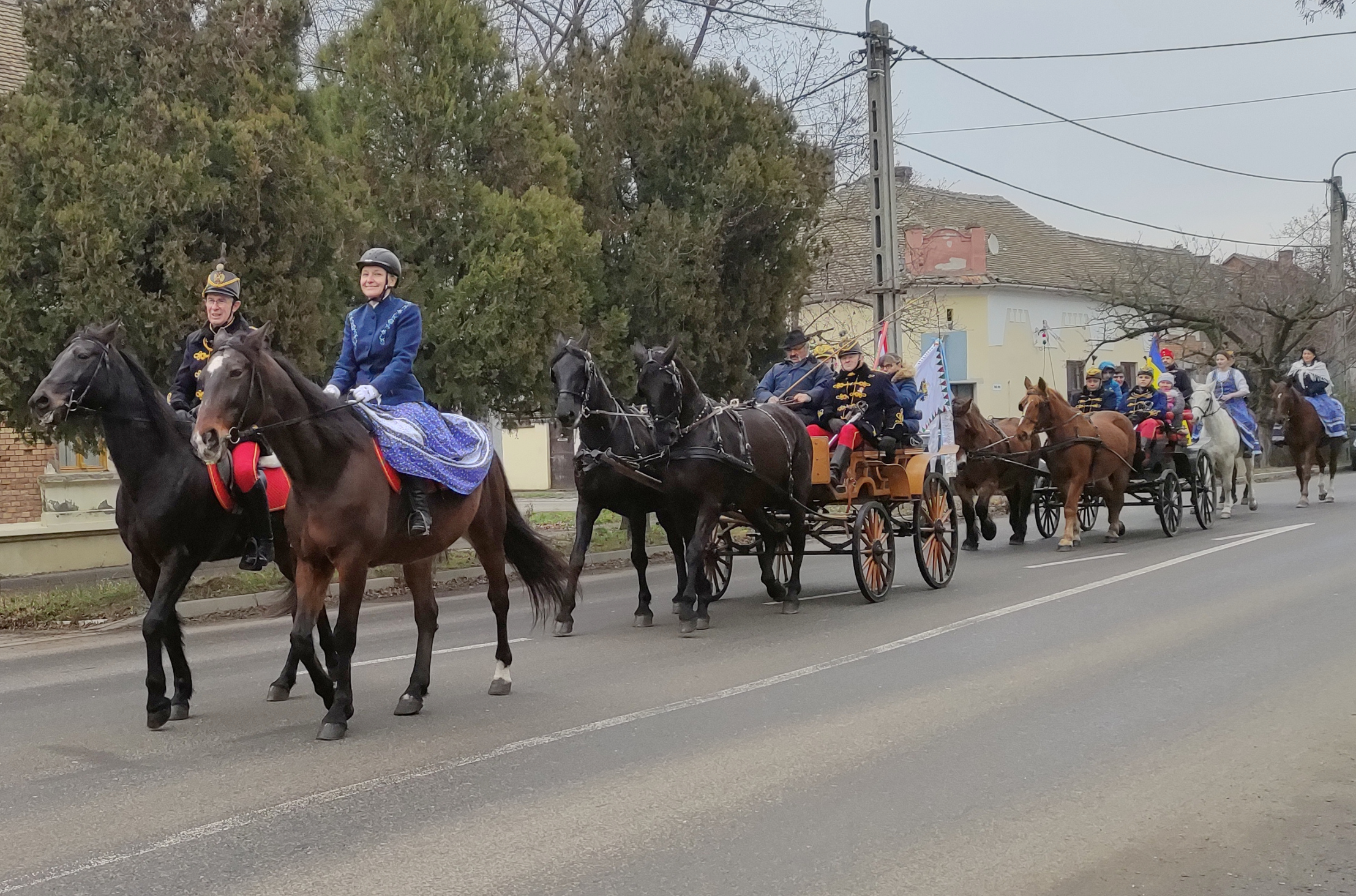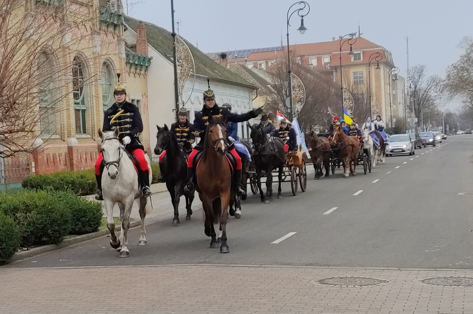 A látványos menet délelőtt 11 órakor indult az egykori Serháztér utcai huszárlaktanya épületétől. A lovashuszárok, a velük együtt lovagló hölgyek és a fogatok alaposan körbejárták a várost, nem kihagyva a Family Center és a Tesco ilyenkor zsúfolt parkolóit sem.