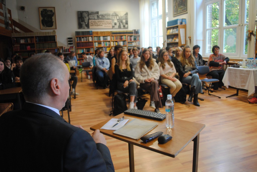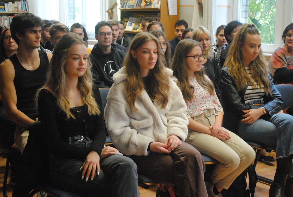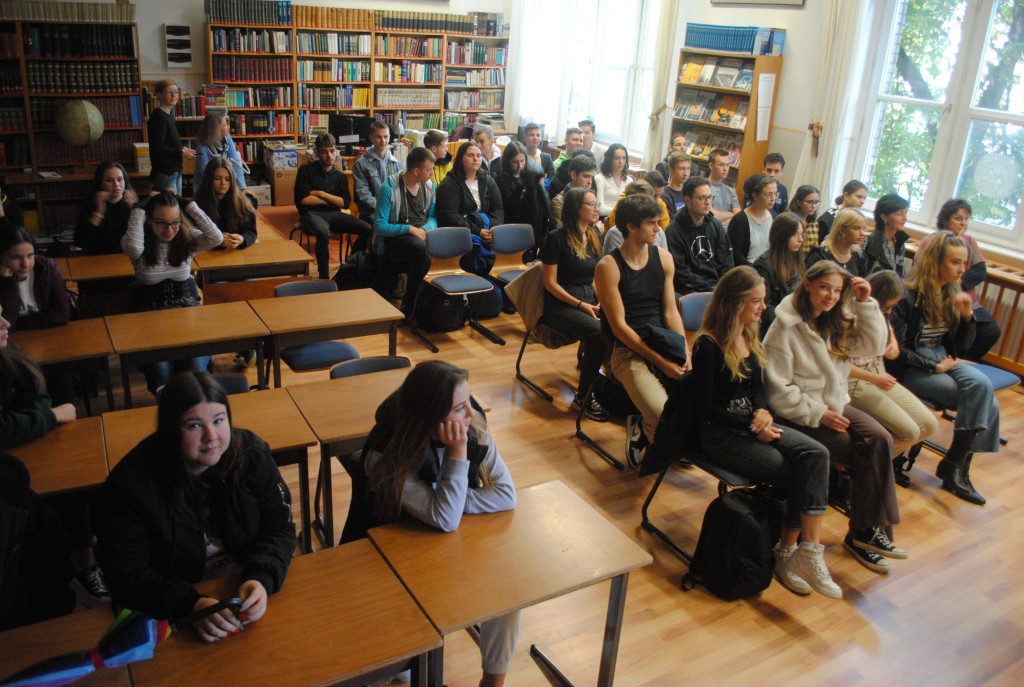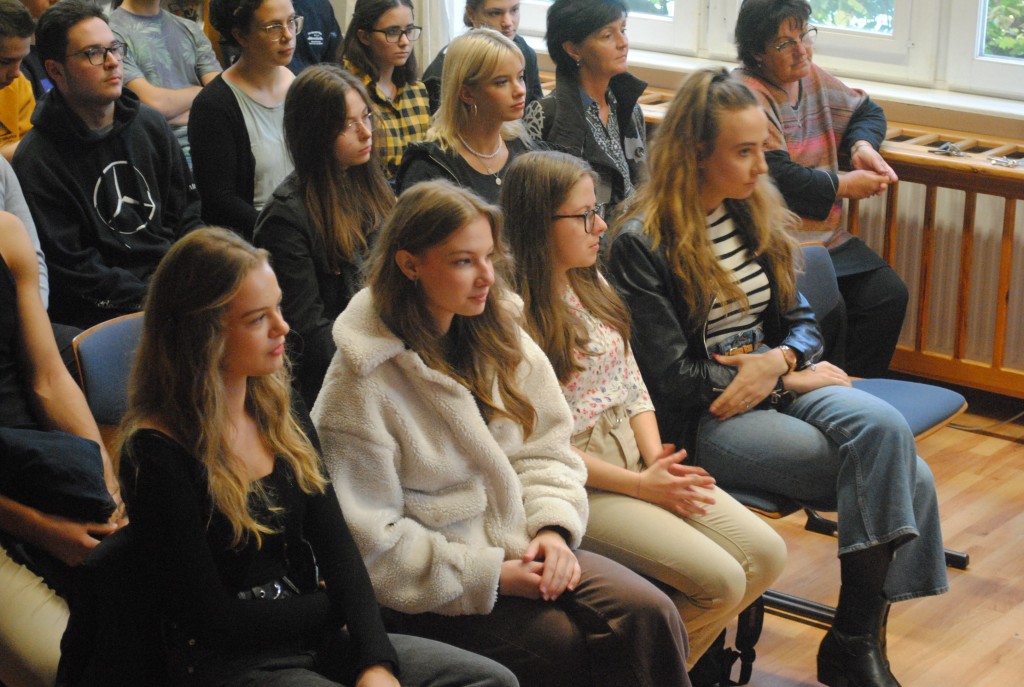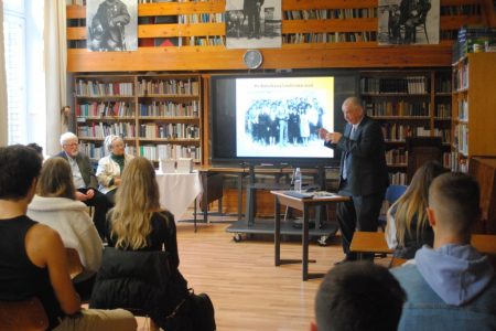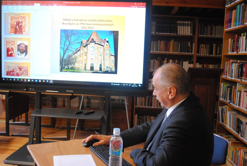 A ma délelőtt a gimnázium könyvtárában tartott rendhagyó órán Domokos Tamás, Bernád István, Szabó Ilona, Králik Istvánné Bodré Zsuzsa és Fehér Gabriella meséltek az egykori diákkorukról, majd későbbi életpályájukról.