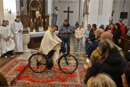 Az orgona még szólt, amikor az atya átvette az ajándékot és megküzdve miseruhájával, ki is próbált. A vadonatúj kerékpárral kibiciklizett a templomból.