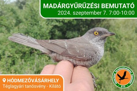 A Vásárhelyi Természetvédelmi Egyesület a Téglagyári tanösvénynél ismét bemutató madárgyűrűzést tart a nagy érdeklődésre való tekintettel, ezúttal szeptember 7-én, szombaton.
