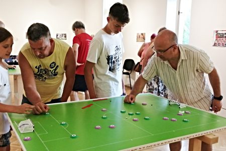 A múzeum emeleti kiállítótermében a foci körül forgott minden, a látogatók kipróbálhatták magukat gombfocistaként, amelyhez szaksegítséget és útmutatást is kaptak a jelenlévő tapasztalt gyűjtőktől és játékosoktól. De volt rugós foci és csocsóasztal is, „az analóg korszak játékonzoljai”, melyeket a mostani gyerekek és fiatalok érdeklődéssel próbáltak ki, őket kísérő régebb óta fiatal szüleik pedig lelkesen fedeztek fel újra.