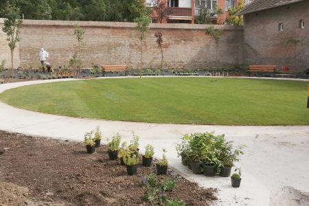 A növények telepítése után hamarosan elhelyezik a csepegtető-öntözőrendszert, majd fahánccsal – a város saját faőrleményével – fedik a talajt. – Azt is tervezzük, – még tárgyalunk a művészekkel, – hogy kisebb köztéri alkotásokat helyeznénk el ide, akár állandó jelleggel, vagy két-három hónapig látható kis szobrokat, és akkor mindig lesz valamiért bejönni egy sétára – avatott be minket a helyszínen a város főkertésze, Pádár Zoltán.
