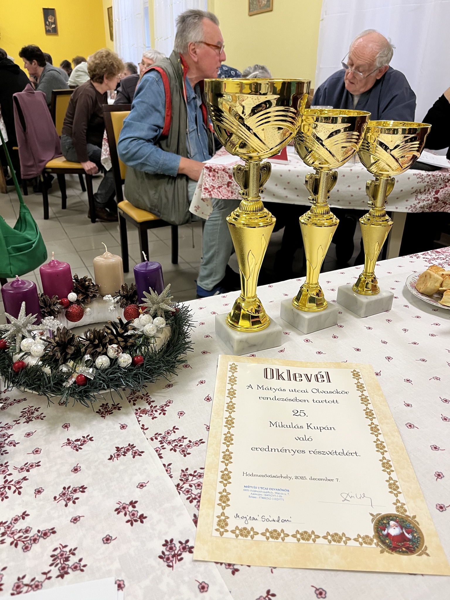 Dr. Berényi Károly alpolgármester közösségi oldalán számolt be a Mátyás utcai Olvasókörben megrendezett Mikulás Kupa elnevezésű műveltségi vetélkedőről, amely idén huszonötödik alkalommal került megrendezésre. Az eseményen ezúttal 35 résztvevő mérte össze tudását különböző témakörökben, az irodalomtól és zenétől kezdve az építészeten és történelmen át egészen a földrajzig.