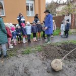 – Azért van szükség a fákra, mert védelmezik a földet és kiszűrik a rossz levegőt – mondta Gombos Donát, aki azt is elárulta, otthon már ültetett egy barackfát, így már kettő is van belőle. – Itt az egyik fánál csak gereblyéztem, de a másiknál gereblyéztem s kapáltam is – tette hozzá a kisfiú. Ugyanezt csinálta a többi ovis is, nagy ügybuzgalommal forgatva a kiskapát, kislapátot.