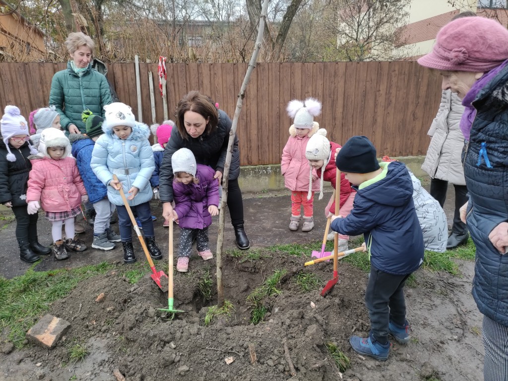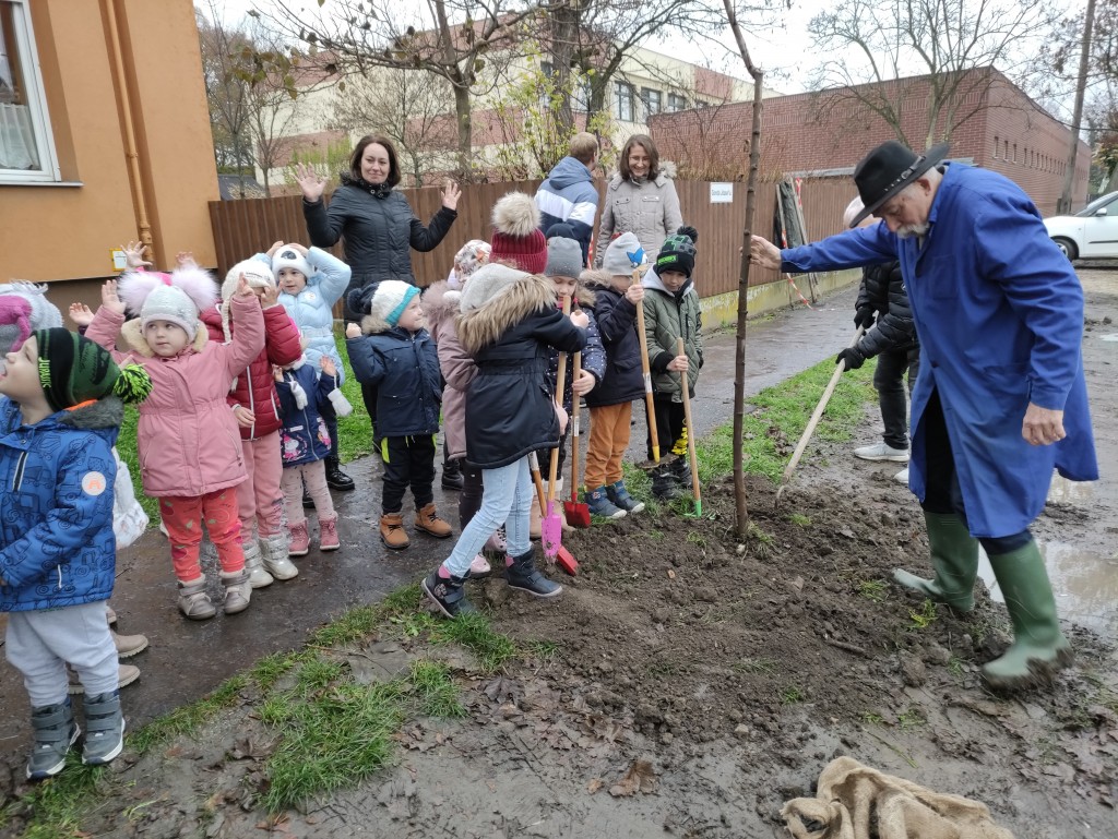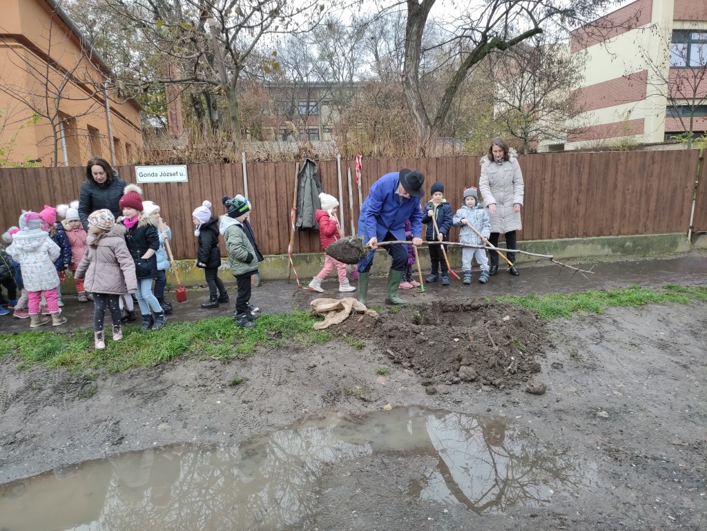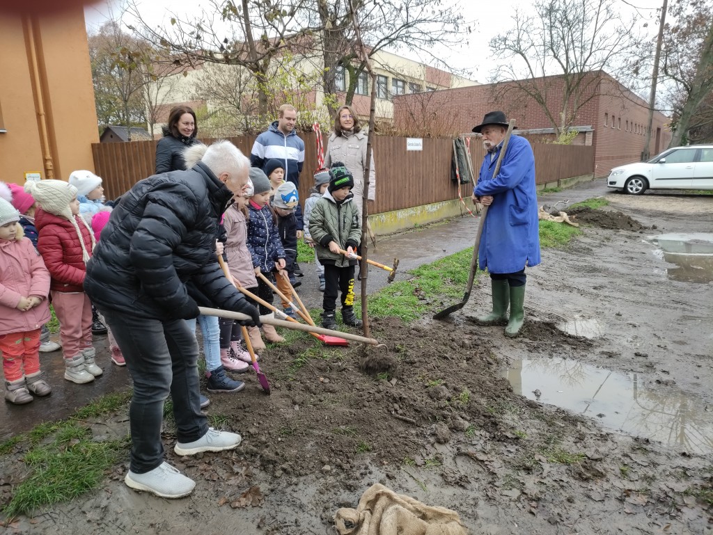 A faültetés ötletét az okozta, hogy valamiért megszakadt az utcai fasor az óvodai kerítésnél.