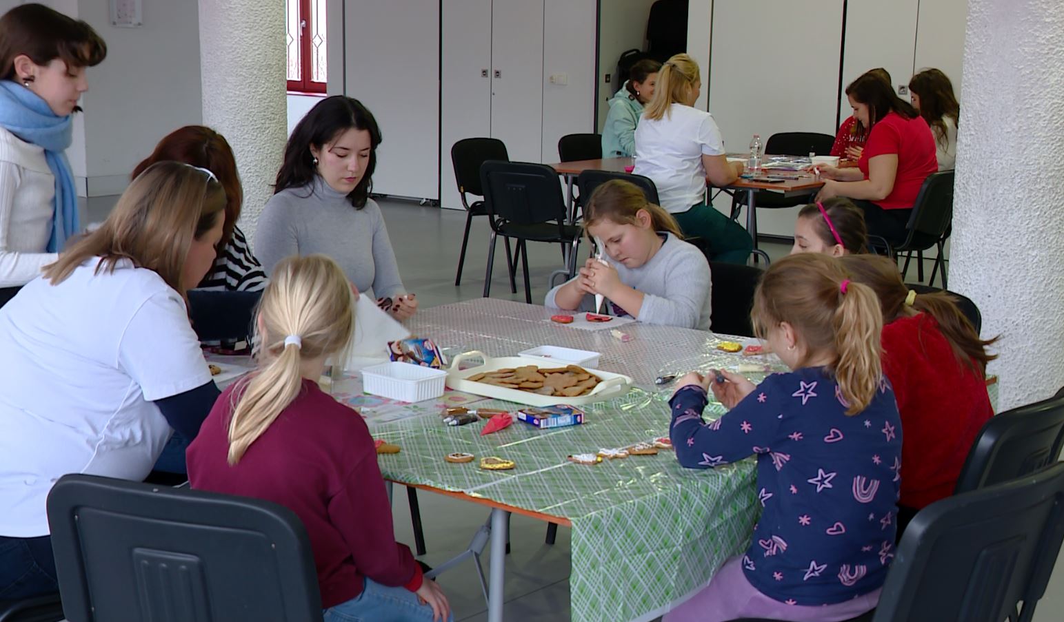 Az ajándékosztás utána gyerekeket és a szüleiket a Bessenyei Ferenc Művelődési Központ emeletén a Mesecukrászda várta, ahol mézeskalácsot készíthettek és csillámtetoválást is kérhettek.