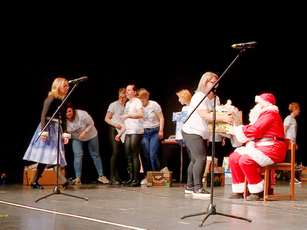 Kétszáz, a Kagylóhéj Család- és Gyermekjóléti Szolgálat gondozásában lévő kisgyermeknek szereztek ma délután kettős örömöt is az Aldi Magyarország dolgozói, illetve mindazok, akik felléptek a Bessenyei Ferenc Művelődési Központ színháztermében rendezett műsorban. A személyre szóló ajándékokat a Mikulás osztotta ki a gyerekeknek.