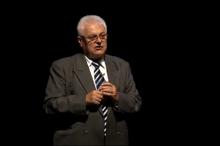 A Szent István téri országzászlónál Kovács László mondja el a gondolatait, aki évtizedekig volt önkormányzati képviselő, 2019-ben már nem indult újra életkorára hivatkozva.