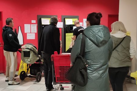 A műanyag palackok, alumíniumdobozok és üvegek visszaváltására várakozók ráérnek egymással beszélgetni, még akkor is, ha egyébként előtte nem is ismerték egymást. Már távoli rokonok is egymásra találtak itt, várakozás közben.