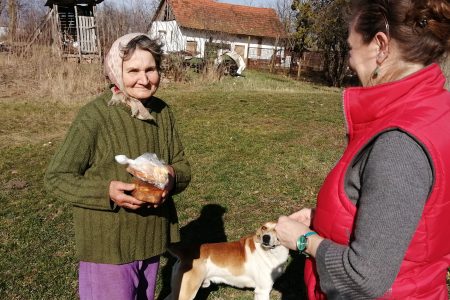 Patócs Éva, az ételosztás egyik rendszeres segítője Kútvölgyön él, általában az innen jelentkezőknek hordja ki az ételt. Ezúttal 11 adagot kértek a Vásárhely melletti kistelepülésről, amely Évának köszönhetően ért el az itt élő, különféle okból rászorulókhoz. Éva körülbelül két hónapja csatlakozott a segítők csapatához, és helyben, ahol lakik, szinte mindenkit ismer. Amikor megkérdezem, biztosan mindenki rászoruló-e, akinek kivisz egy adag ételt, csak annyit mond: – Nem kérdezünk, segítünk! Persze ahogyan aztán egymás után adjuk át a leveses dobozt és a kenyeret, gyorsan eloszlik a kétségem, mert tényleg nehéz sorsú emberekhez jut el a segítség.